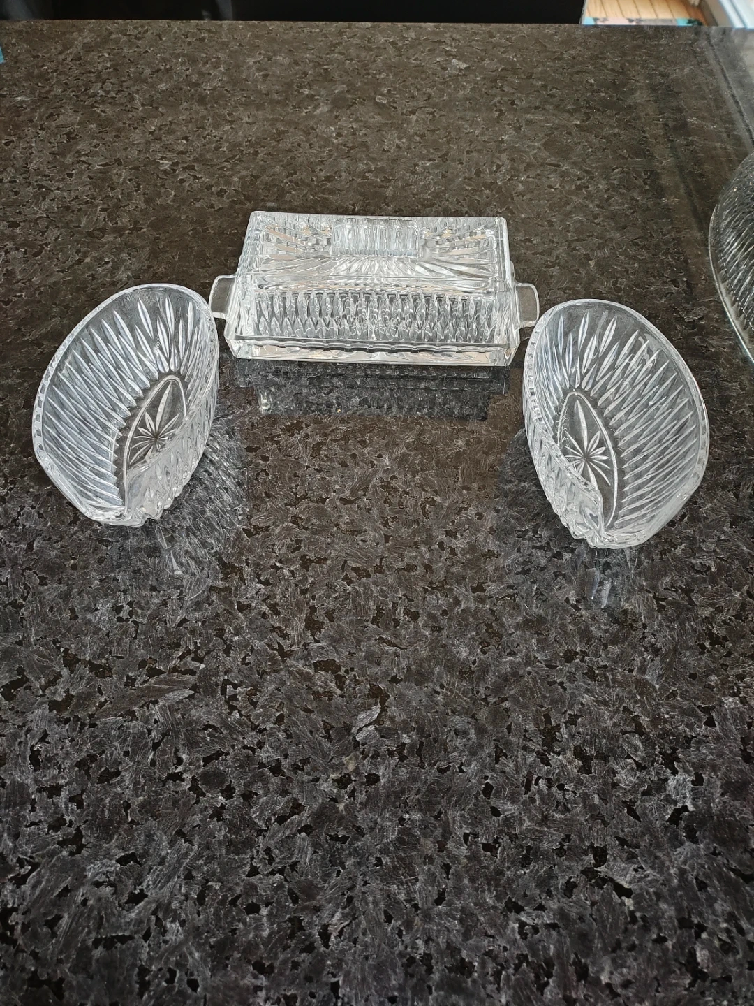 Princess House Royal Highlights covered butter dish & (2) utensil holders. Cash only pick up only