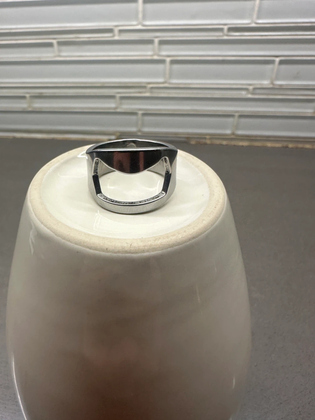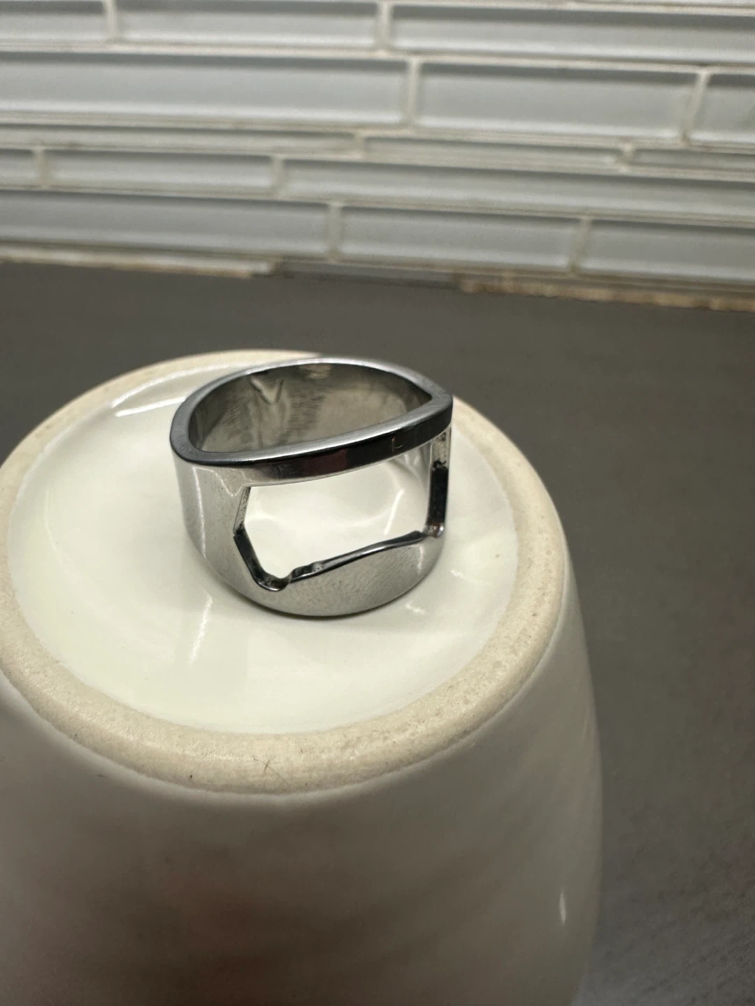 SS STEEL BEER BOTTLE CAP OPENER RING MEN SIZE 11 not silver