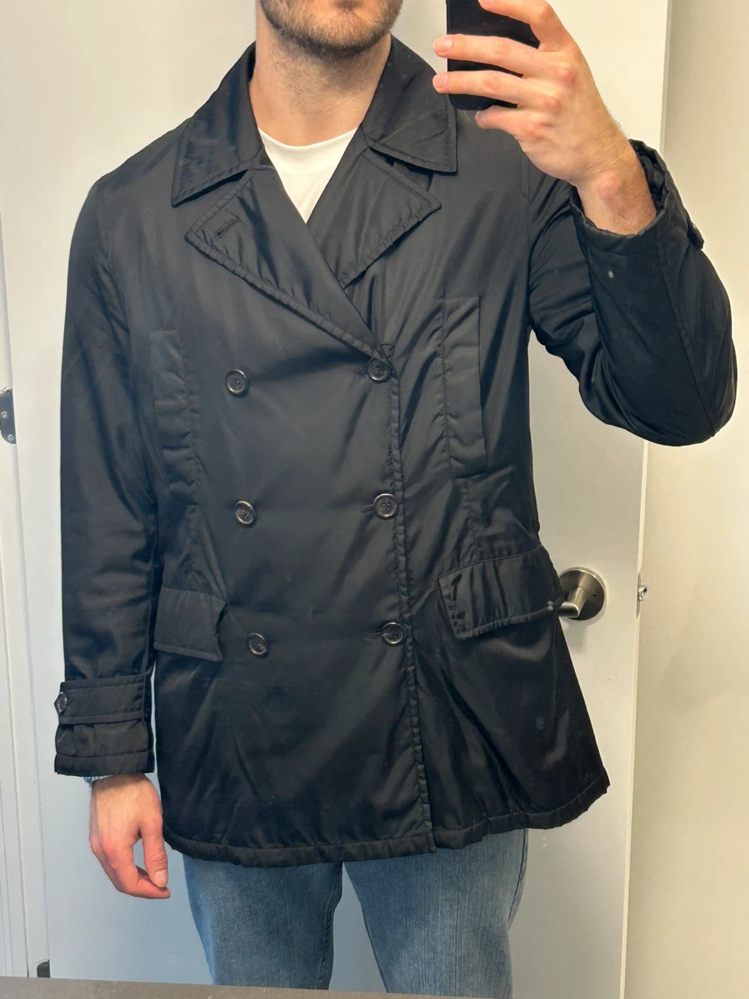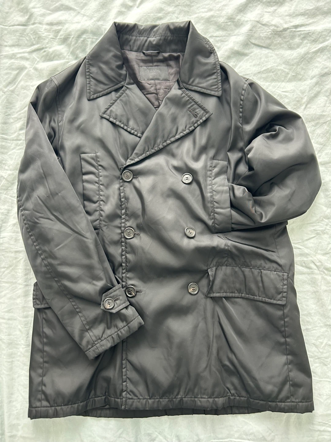 Prada Black Nylon Double-Breasted Peacoat - Size L