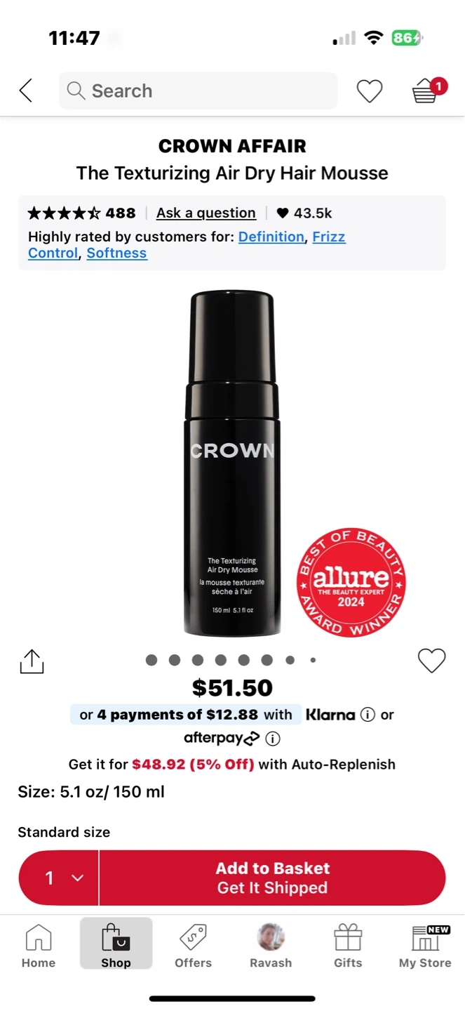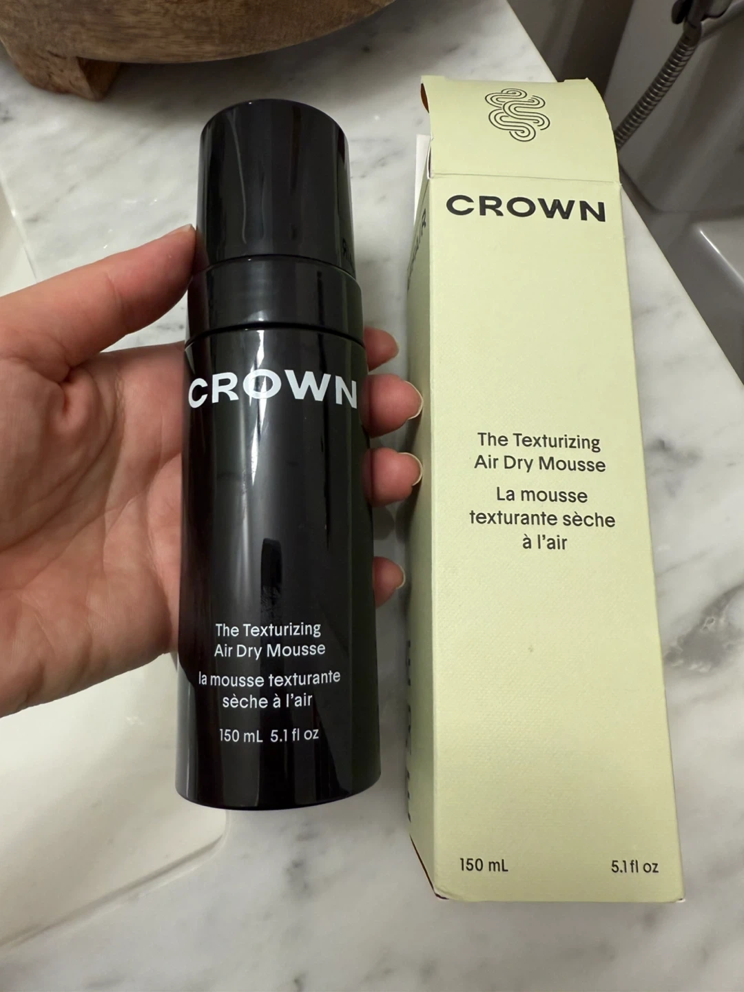 Crown Affair's texturizing air dry hair mousse. 150 ml / 5.1 fl oz. Perfect for adding definition and control.
