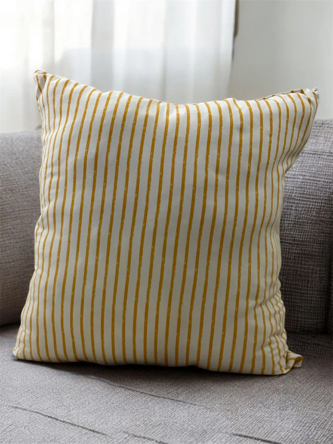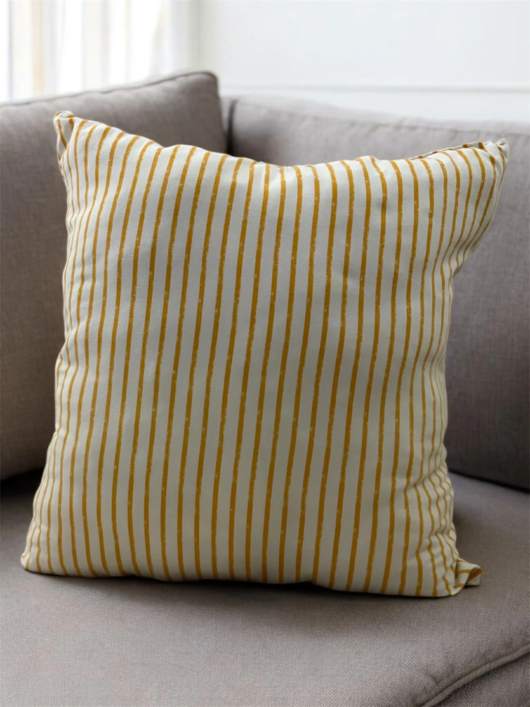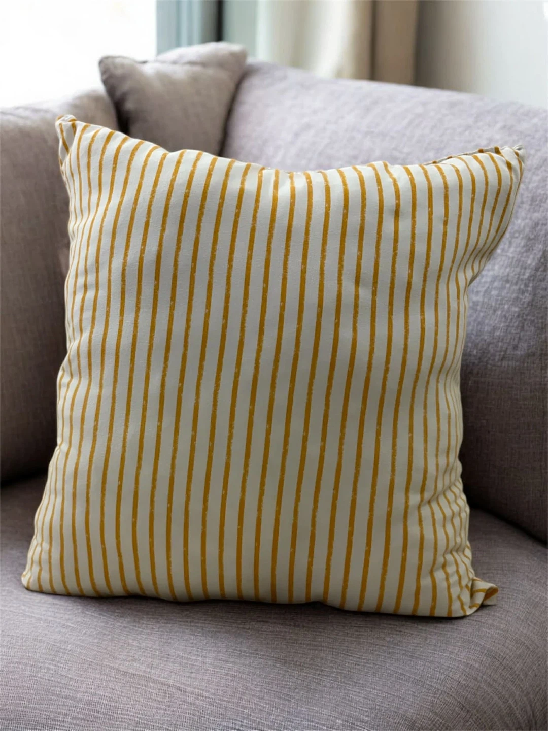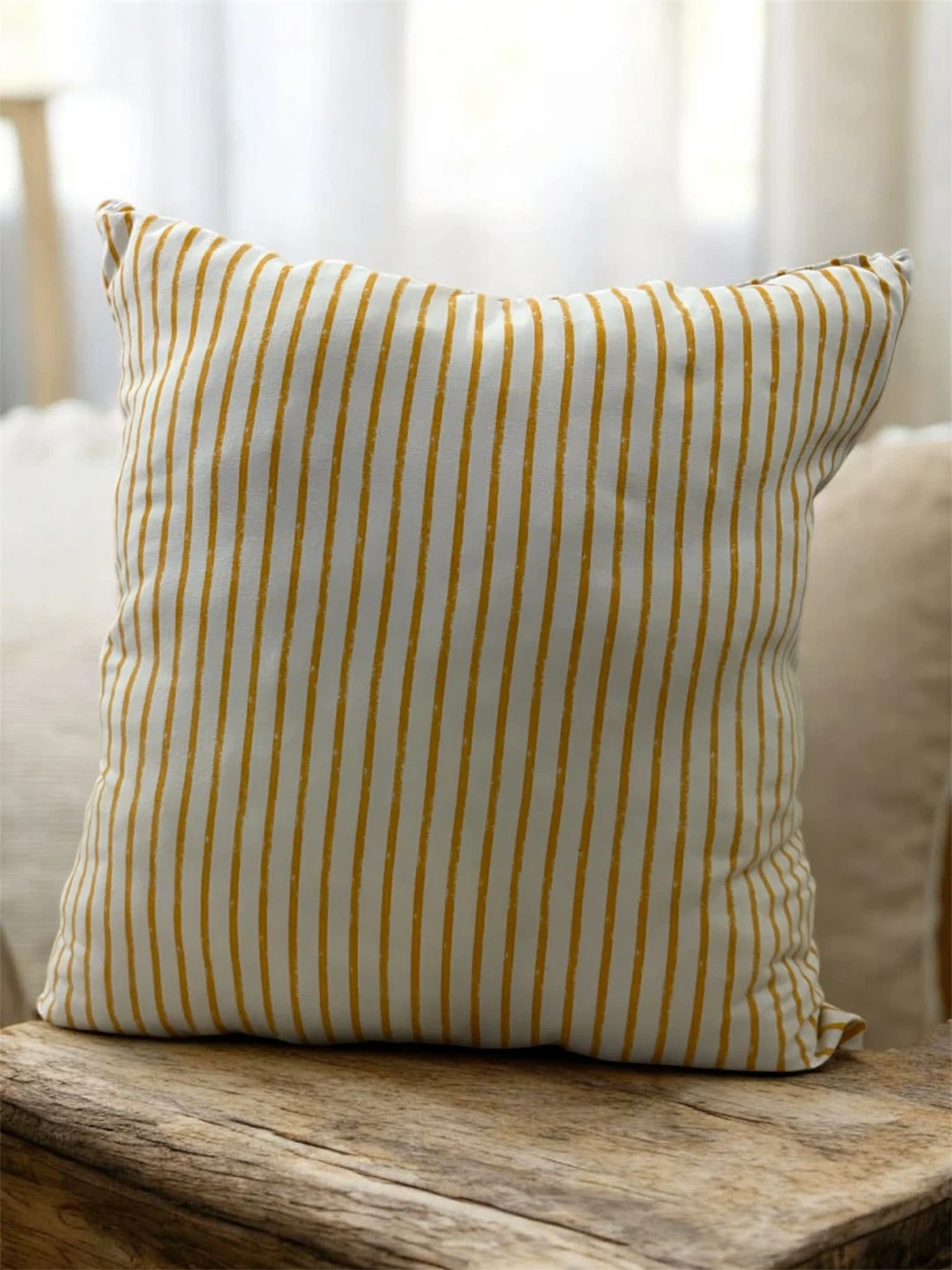 3 throw pillows Adds a cozy touch to your living space. It's a square pillow with a classic stripe pattern in yellow and white. It's great for your sofa or accent chair or bed