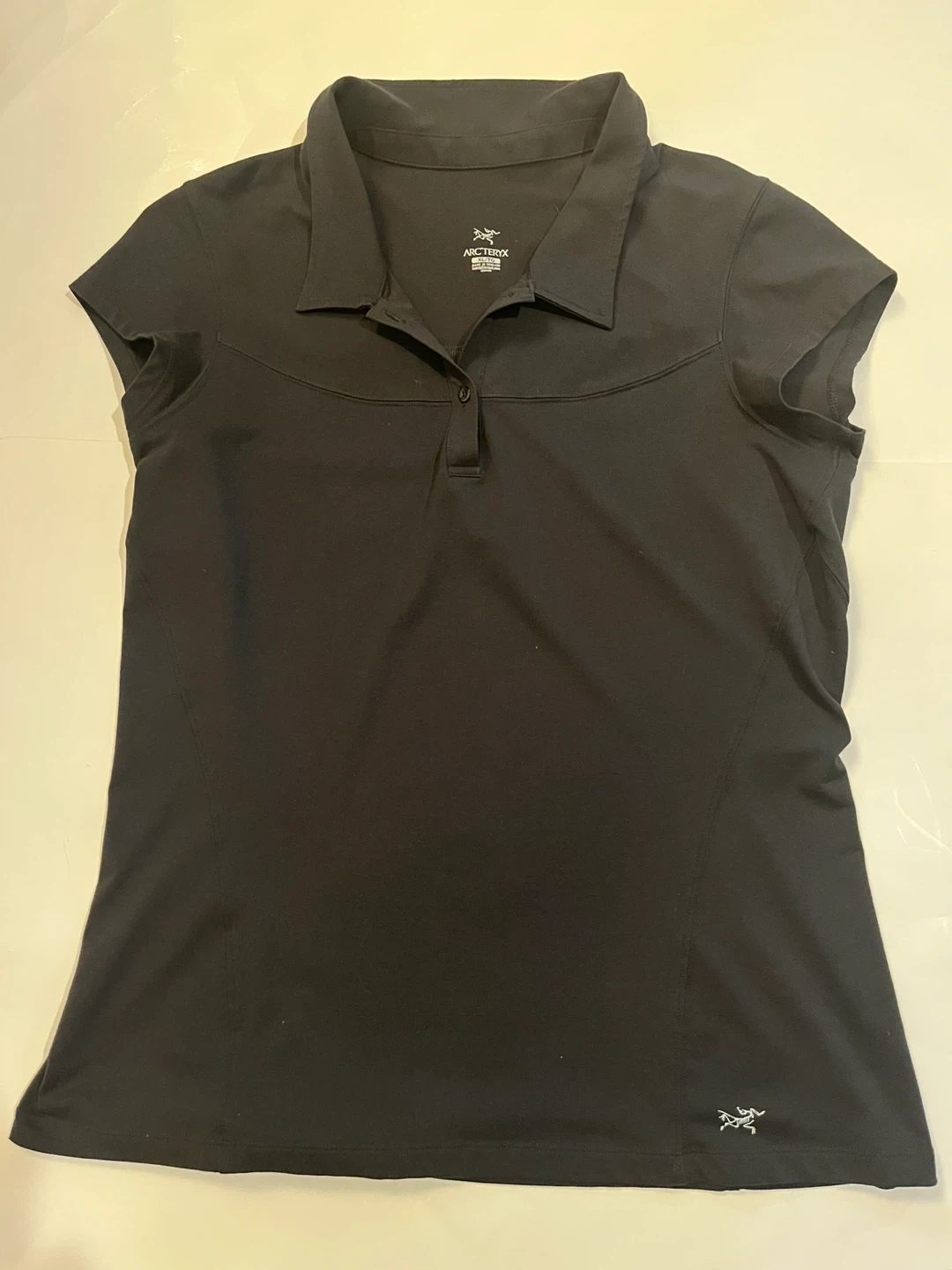 Selling a gently used Arc'teryx women's polo shirt in black, size XL This stylish and comfortable polo is perfect for everyday wear or outdoor activities. It's in great condition and ready for a new home!