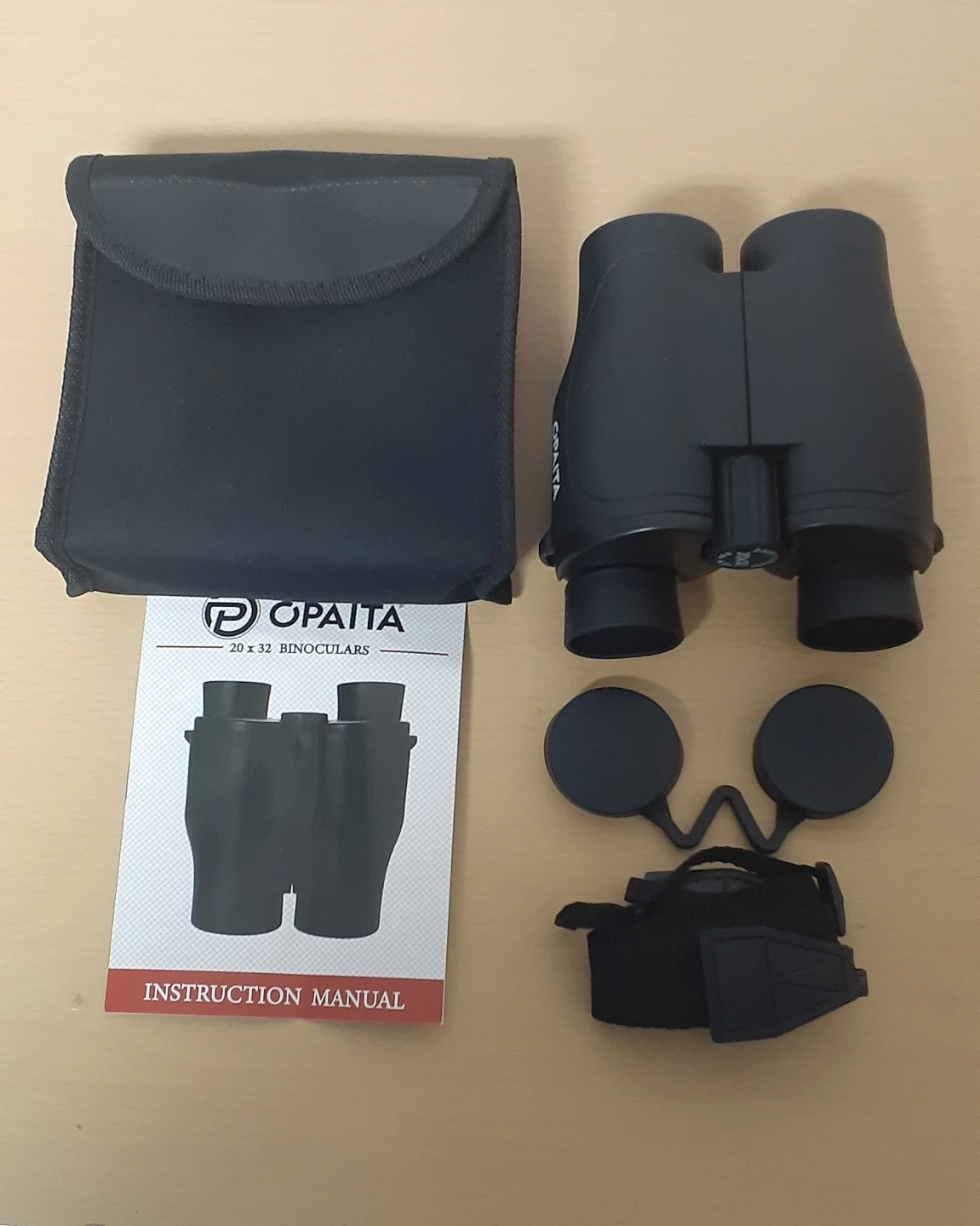 Enhance your outdoor adventures with these Opaita 20x32 binoculars. These binoculars are great for bird watching, hiking, or sporting events. The set includes a carrying case, strap, cleaning cloth, and instruction manual.