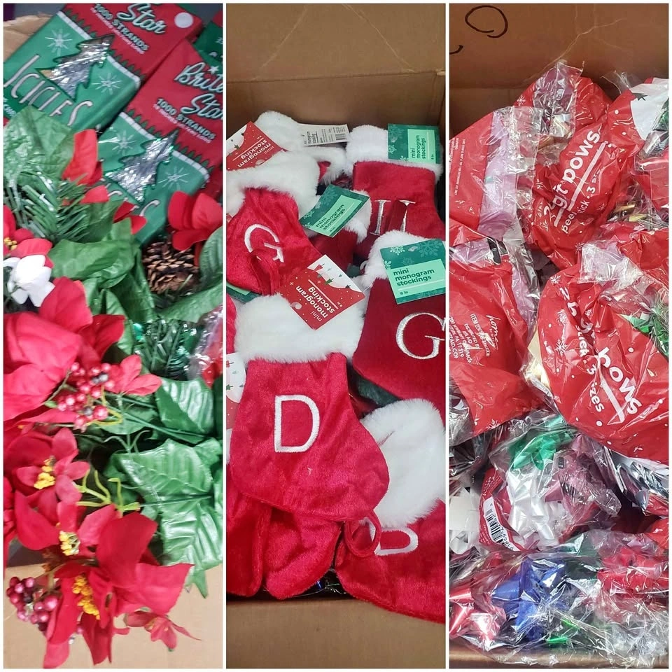 HUGE Christmas Decor Lot! Mini Stockings, Icicles, Bows, Signs &