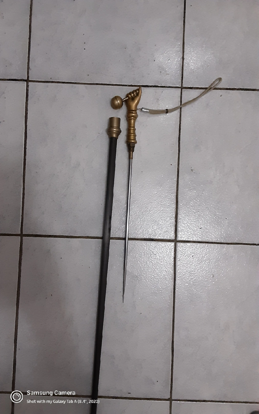 Selling a unique vintage walking stick! It features a distinctive hand-shaped handle with a ball, adding a touch of old-world charm to your strolls. The stick is in good condition and ready for a new home, with secret... brass handel...