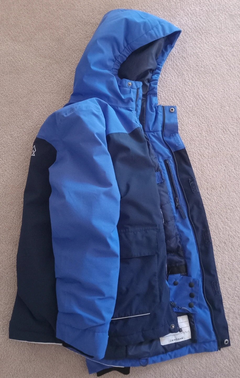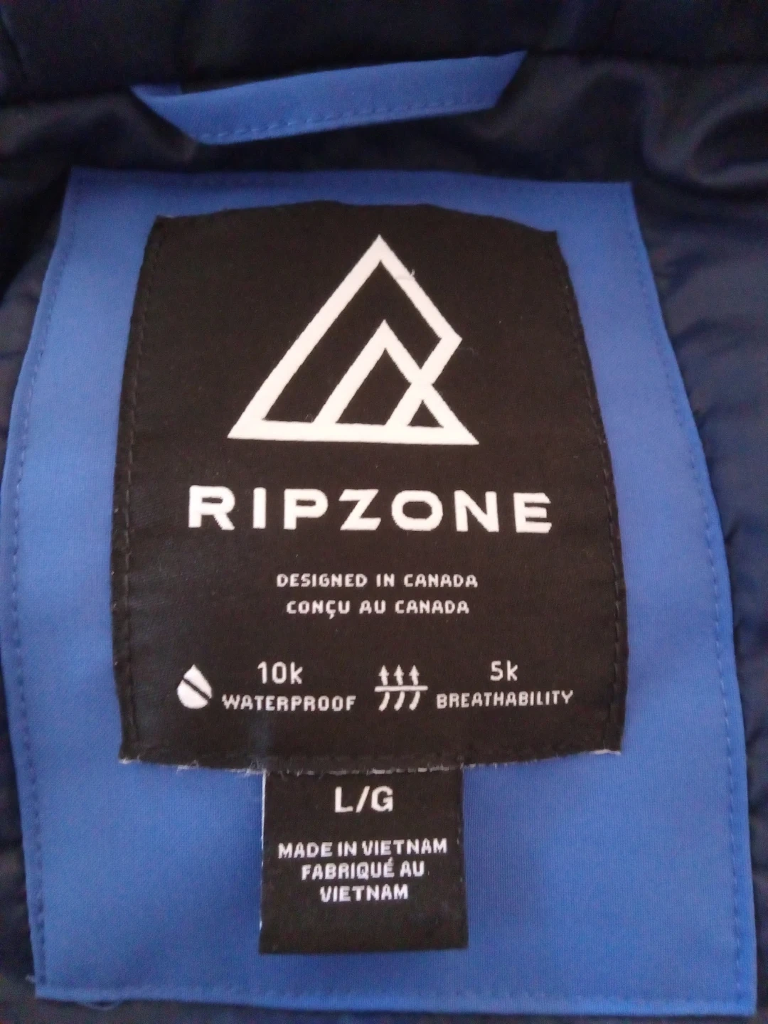 This blue kids Ripzone winter jacket is designed in Canada. It's waterproof with 10k rating and features 5k breathability.