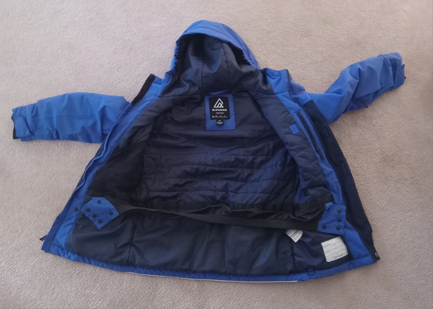 This blue kids Ripzone winter jacket is designed in Canada. It's waterproof with 10k rating and features 5k breathability.