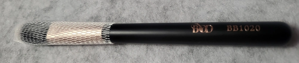 New BoBo brand makeup brush. Black handle, rose gold coloured ferrule. Packaged in protective mesh sleeve.