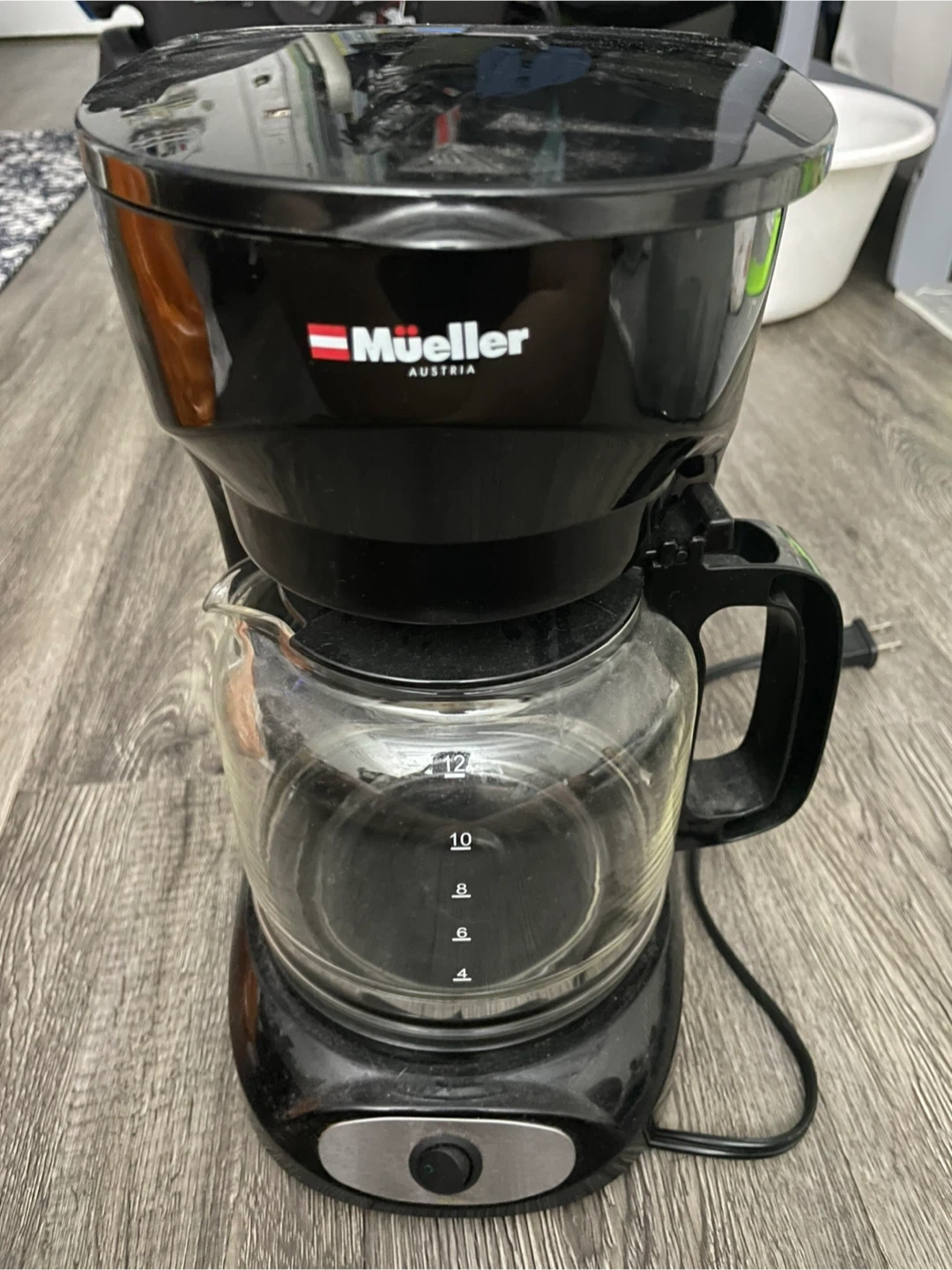 I'm selling a Mueller Austria coffee maker that brews up to 12 cups. It's in good working condition and ready to make your mornings a little easier. It has a clear water level indicator and a simple on/off switch