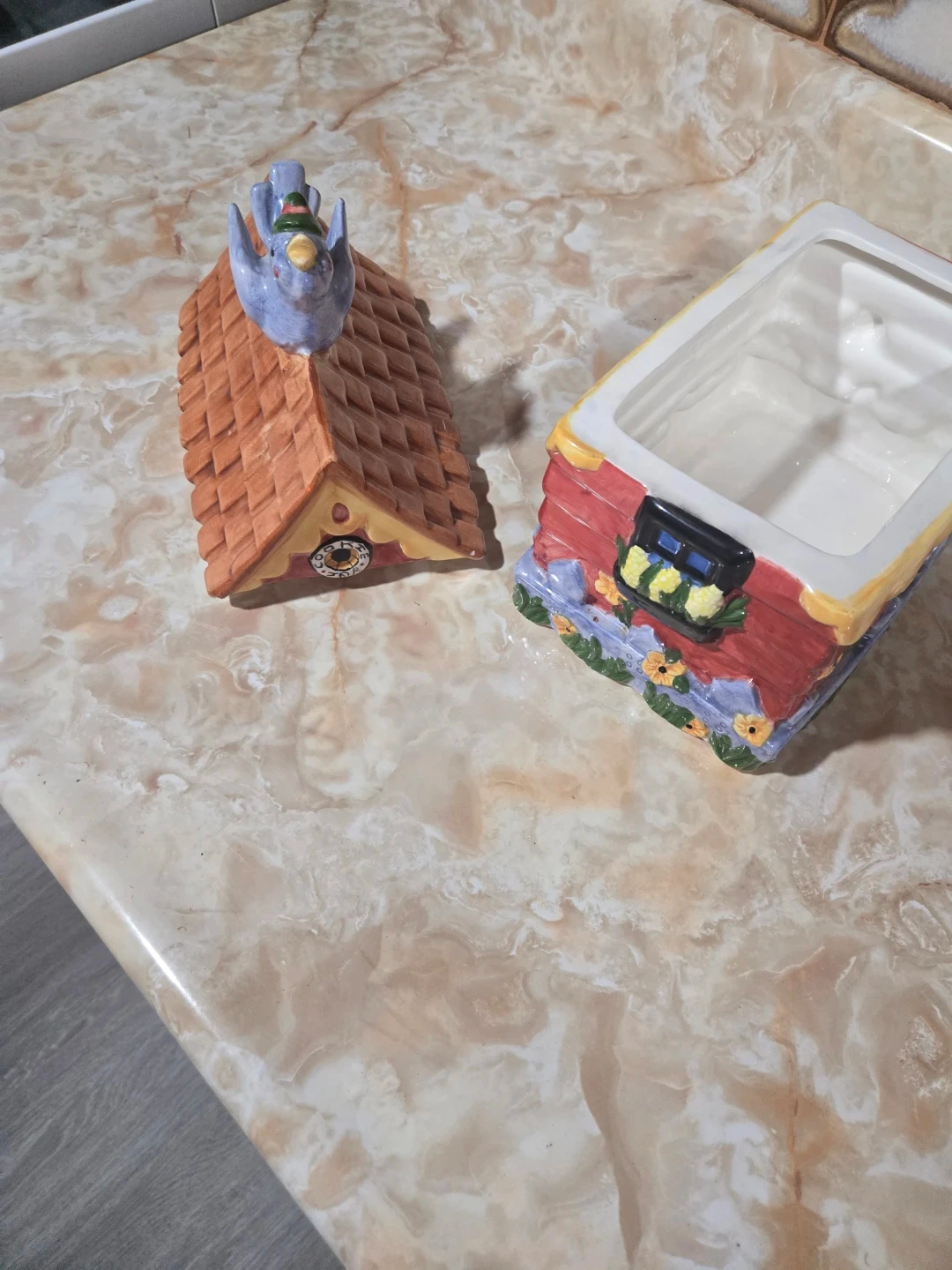 Ceramic House Cookie Jar with Bird