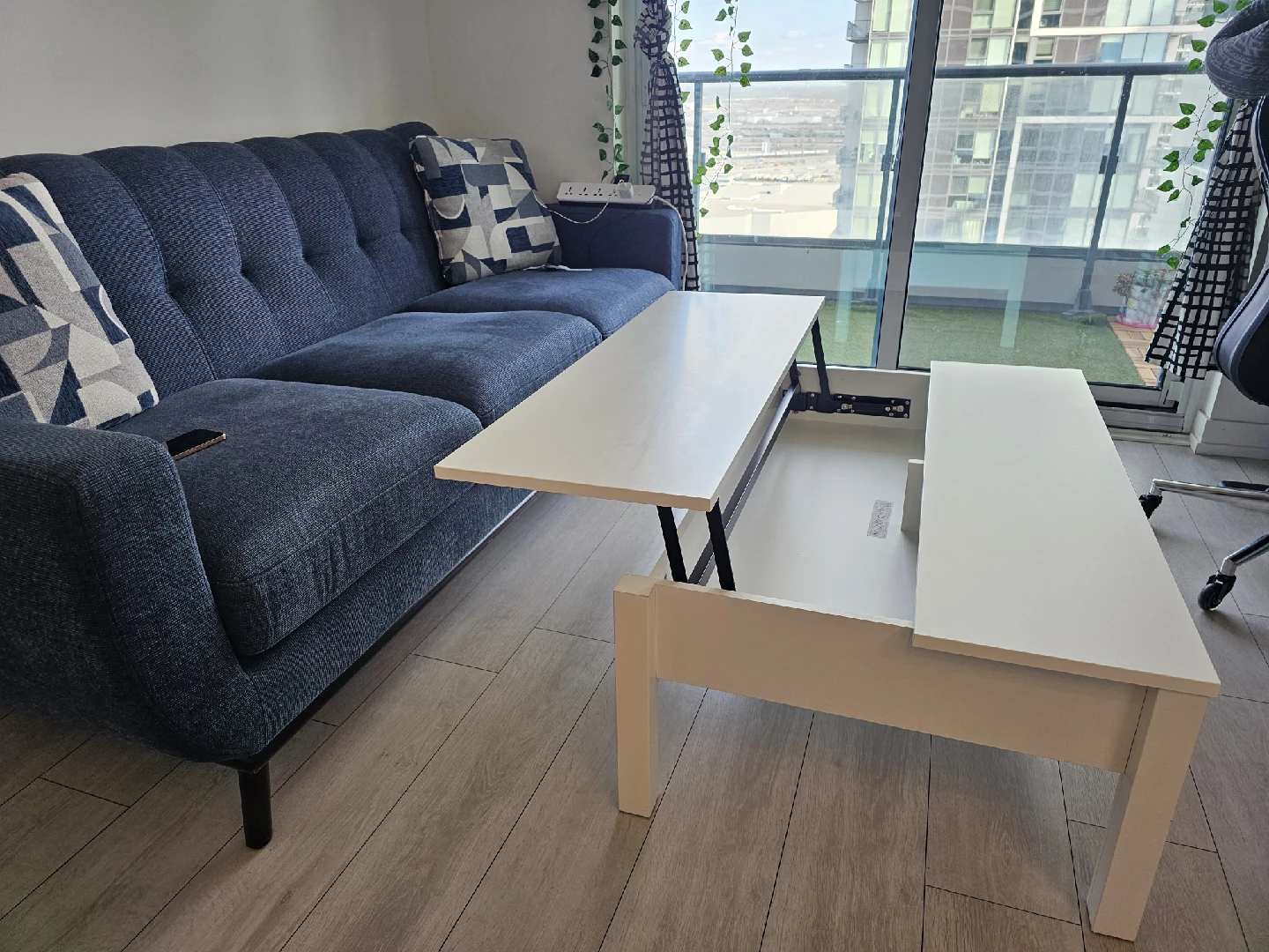 Selling a white lift-top coffee table ( ikea trulstorp) It's in great condition and perfect for small spaces! The lift-top feature is super convenient for working from home or enjoying a meal in front of the TV.