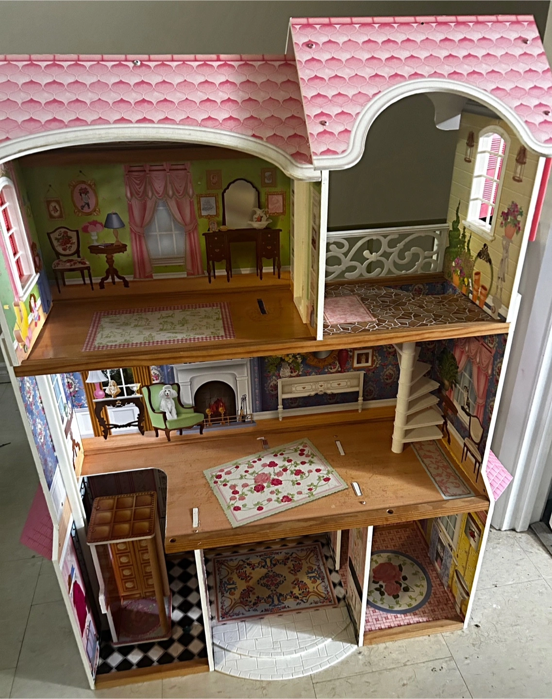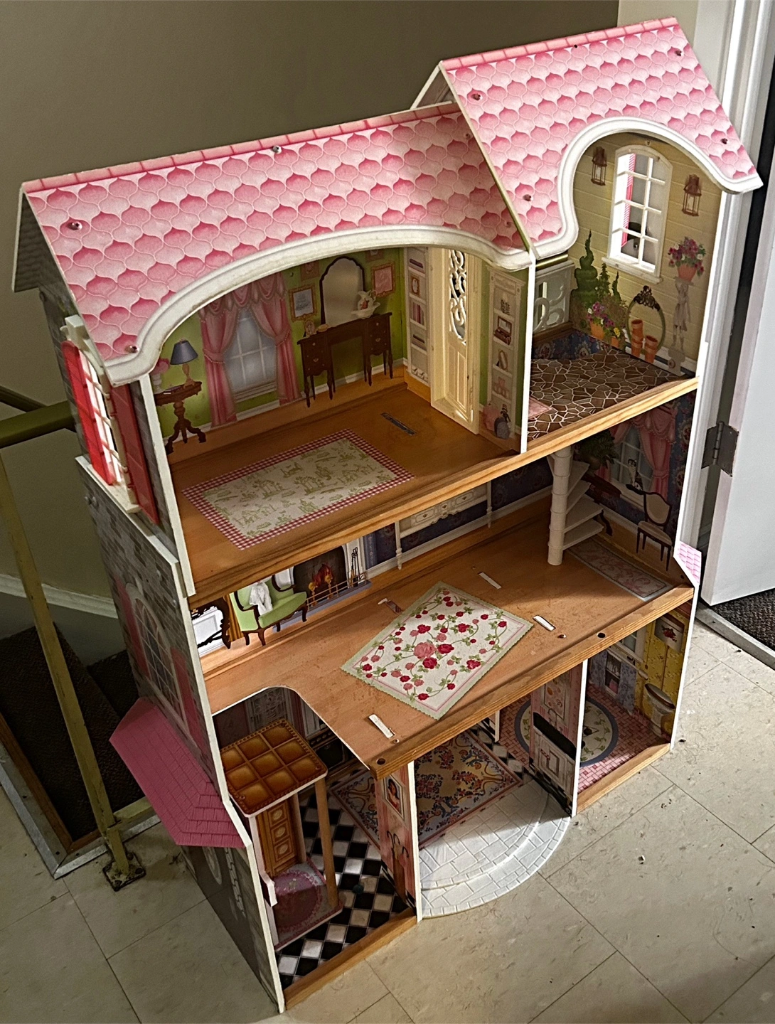 Selling a lovely dollhouse that's ready for a new home! It comes with multiple rooms and different levels! It's in good condition and perfect for imaginative play! Just needs some furniture to complete your beautiful home!