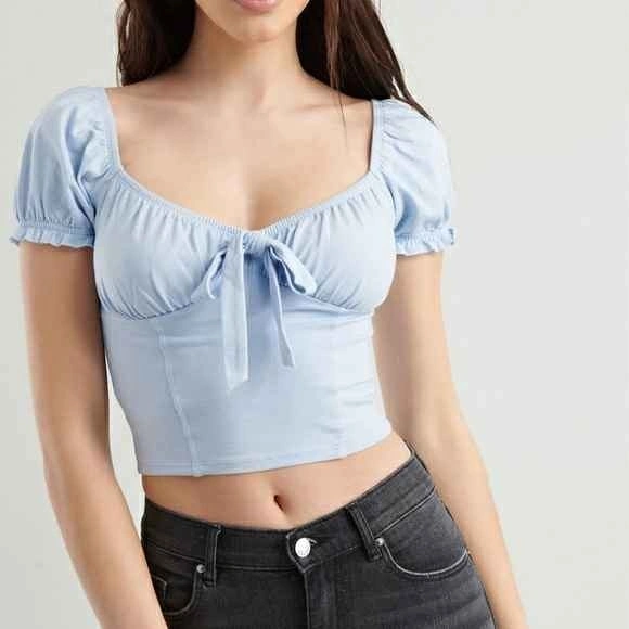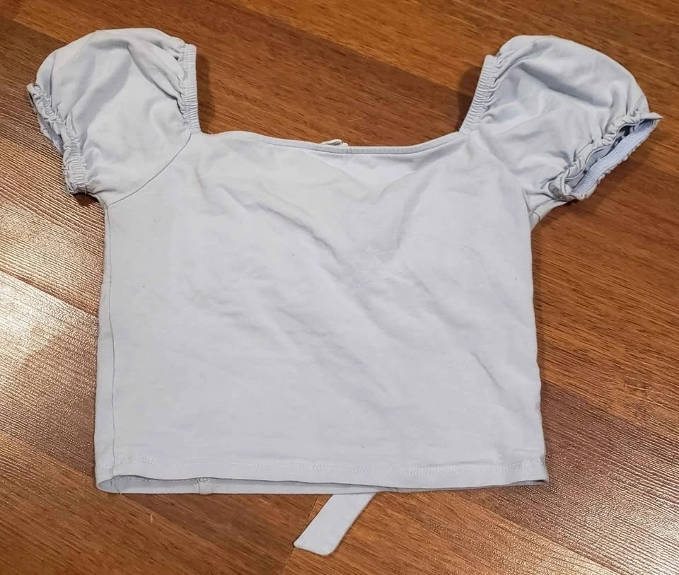 Pale Blue Puff Sleeve Crop Top - Size P/S