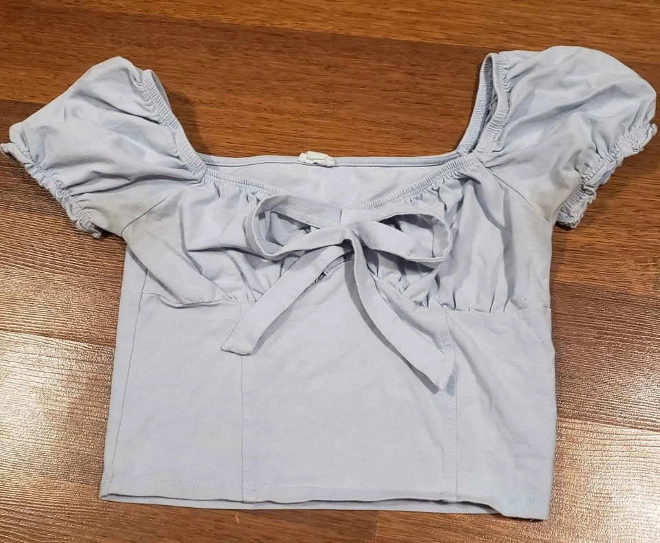 Pale Blue Puff Sleeve Crop Top - Size P/S