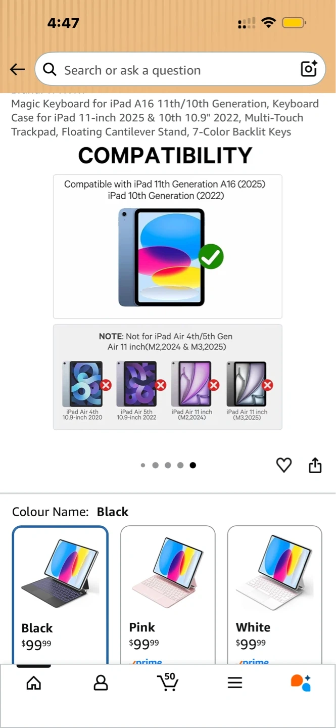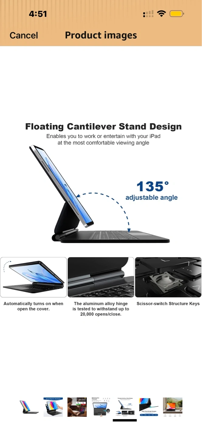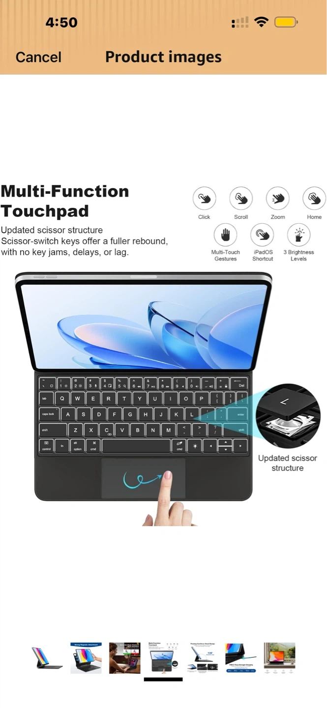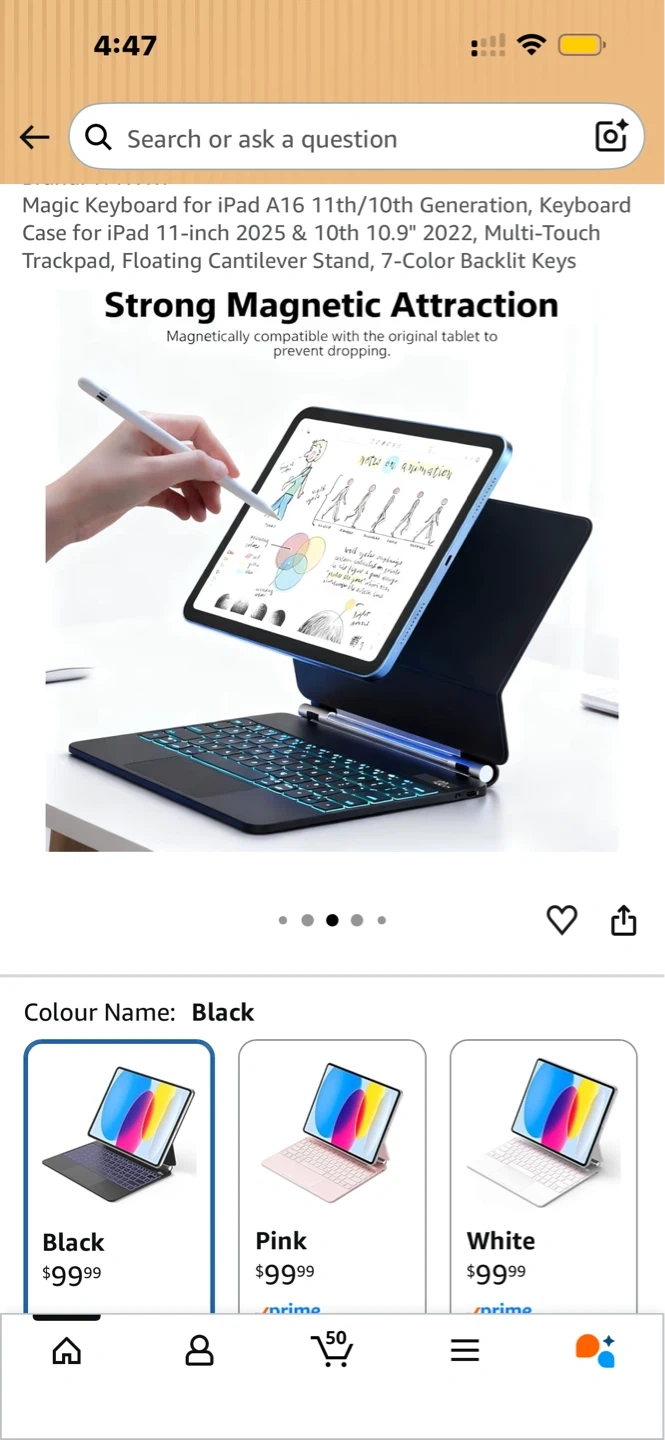 Magic keyboard case for iPad 11th/10th Generation, 10.9-inch. Features a multi-touch trackpad, floating cantilever stand, and auto off mode. Strong magnetic attachment for secure connection.