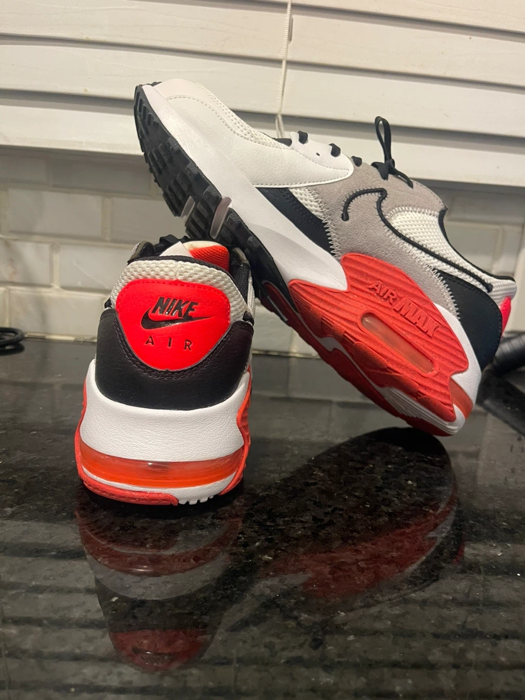 Selling a pair of Nike Air Max 90s in a white, black, gray and red colorway. The shoes are in good condition and come with the original box. Great for casual wear or working out!