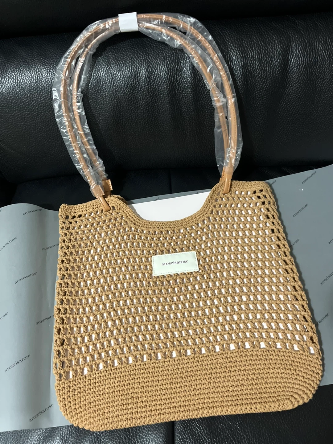 Brand new Aroseisarose tote bag with a crochet design. Tan colour and faux leather handles.
