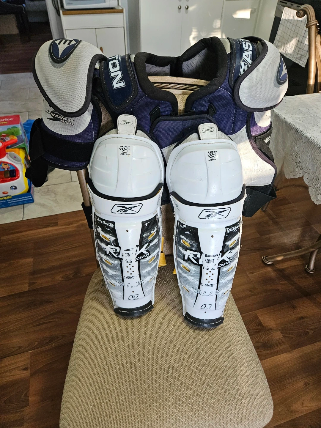 Easton Synergy Hockey Shoulder Pads & Reebok Shin Guards