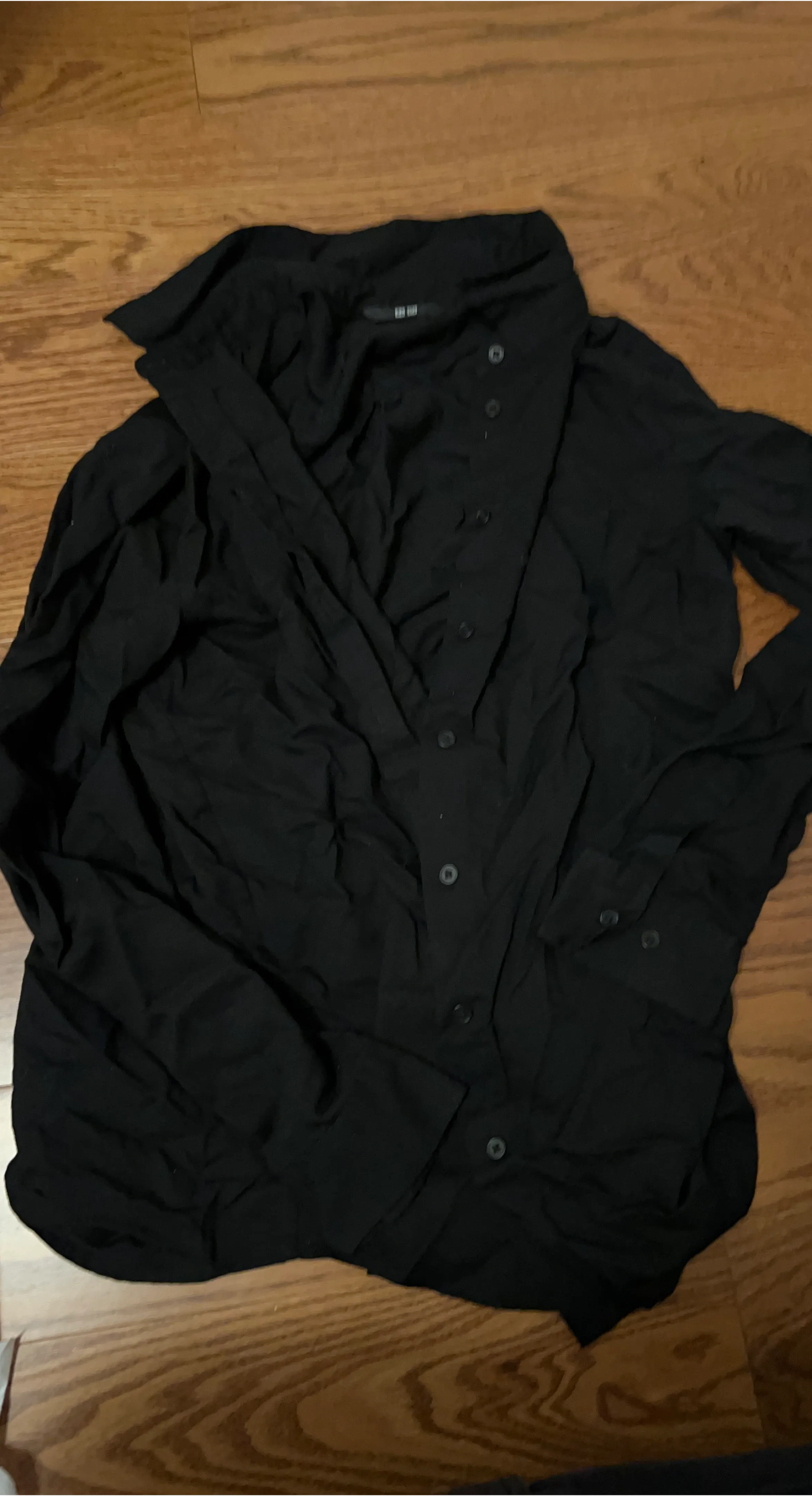 Uniqlo black button-up shirt. Long sleeves. Simple style for everyday wear.