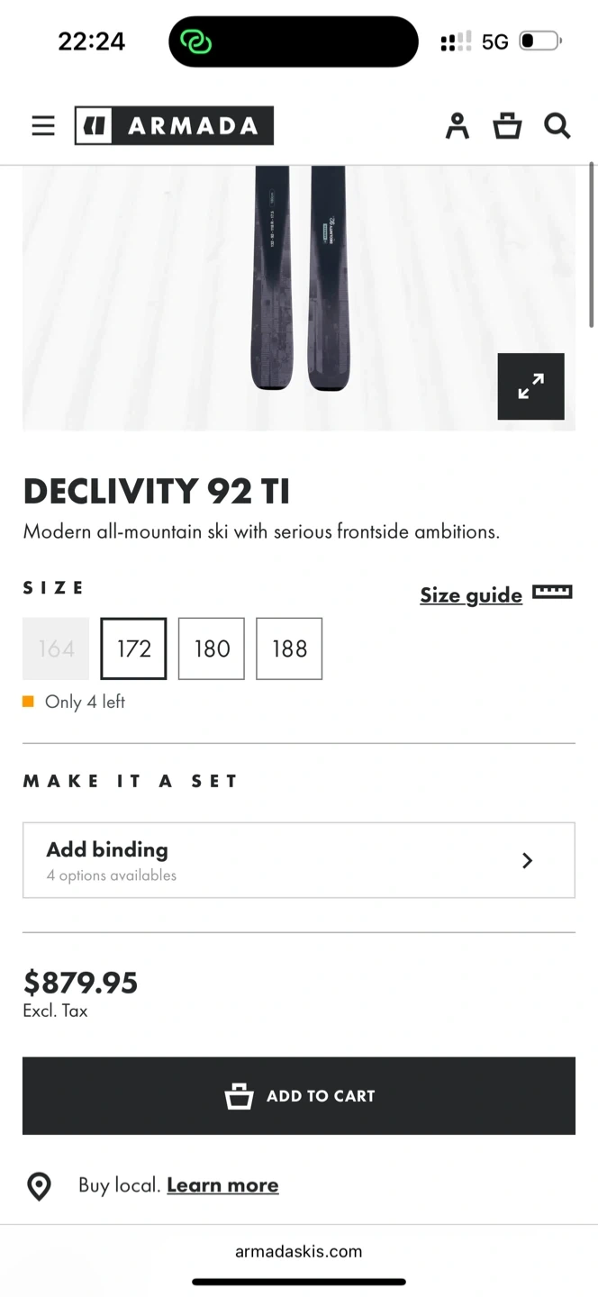 Brand new 2026 Armada all-mountain skis. These skis are 172cm length. They're built for versatile performance on groomed runs and off-piste. Comes with the Armada Strive 14 bindings mounted for a 305 sole length, and it can be adjusted easily. Never used.