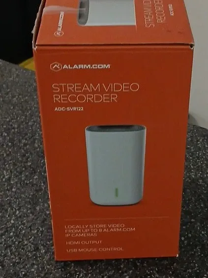 This Alarm.com stream video recorder can locally store video from up to 8 Alarm.com IP cameras. It has HDMI output and USB mouse control. It's useful for home or small business security systems.