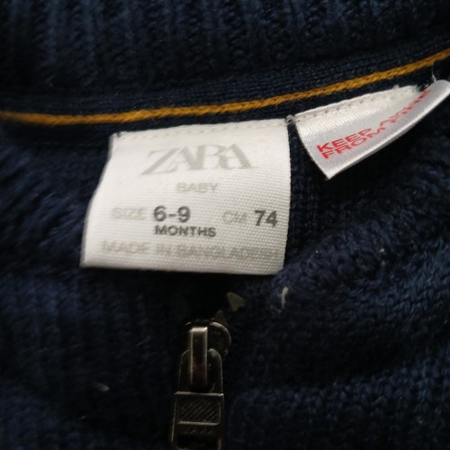 Navy blue Zara baby vest, ideal for ages 6-9 months. This versatile one-piece blends a classic coverall style with the convenience of a vest. Measurements: 11.5" x 12".