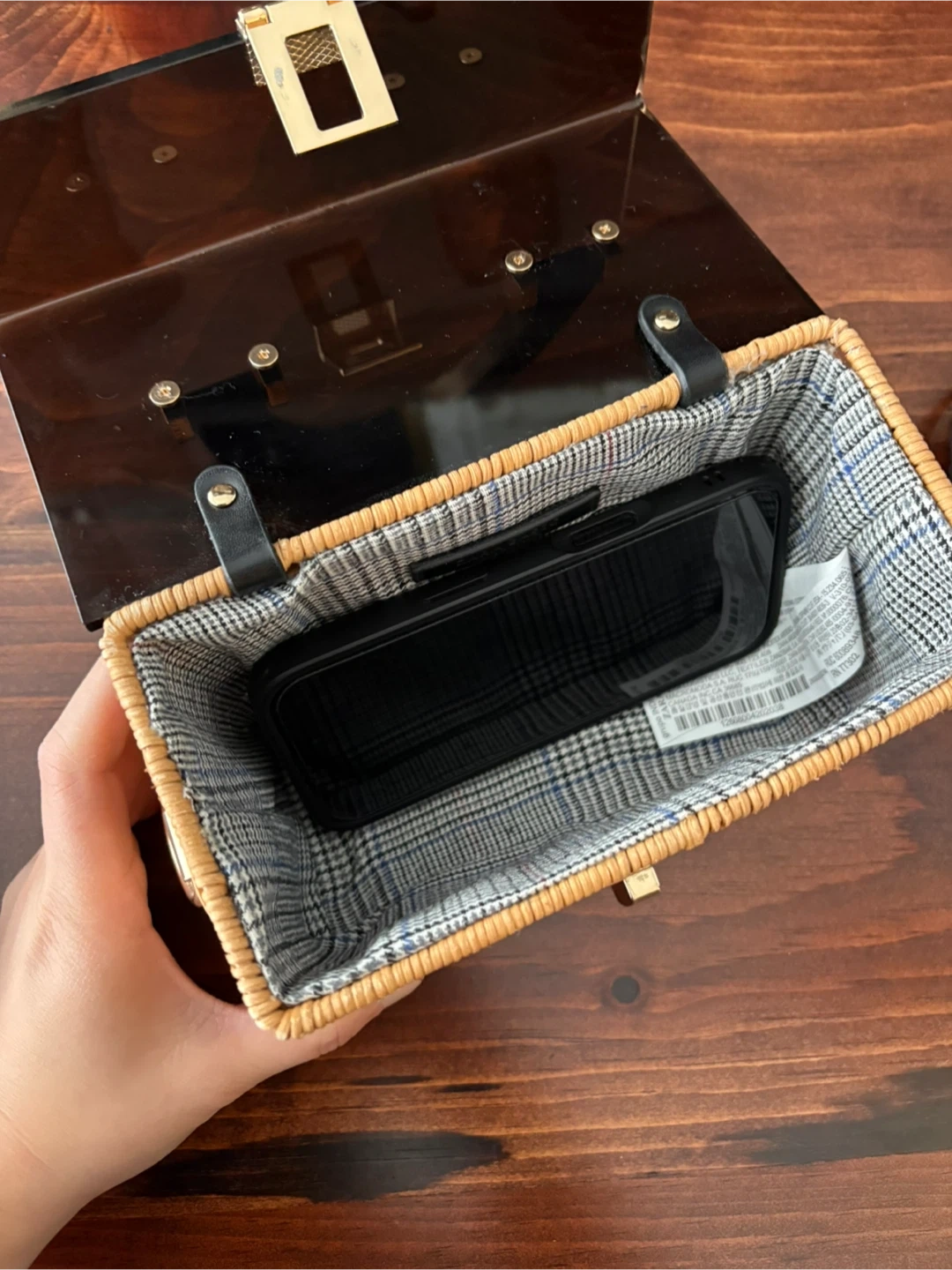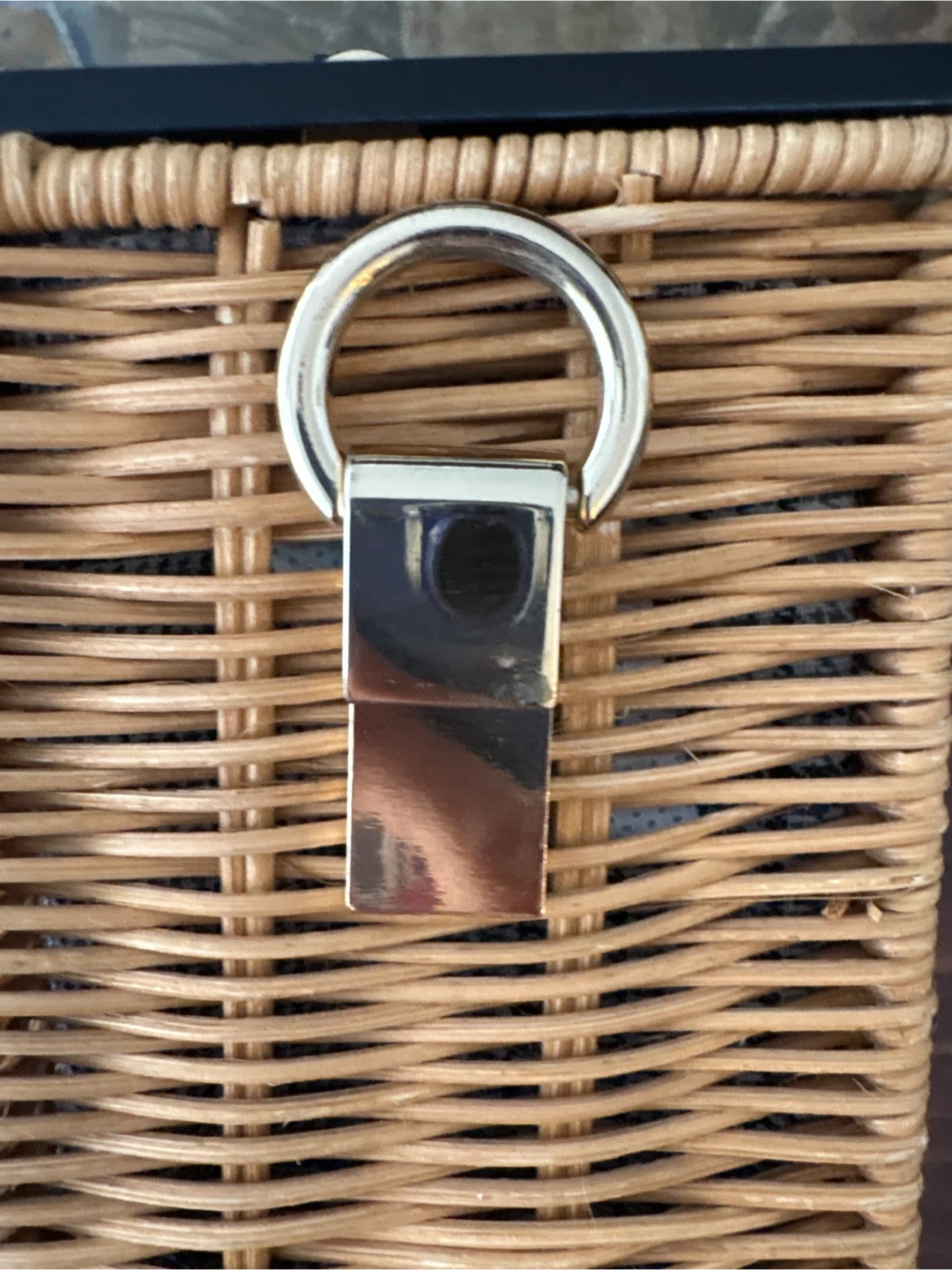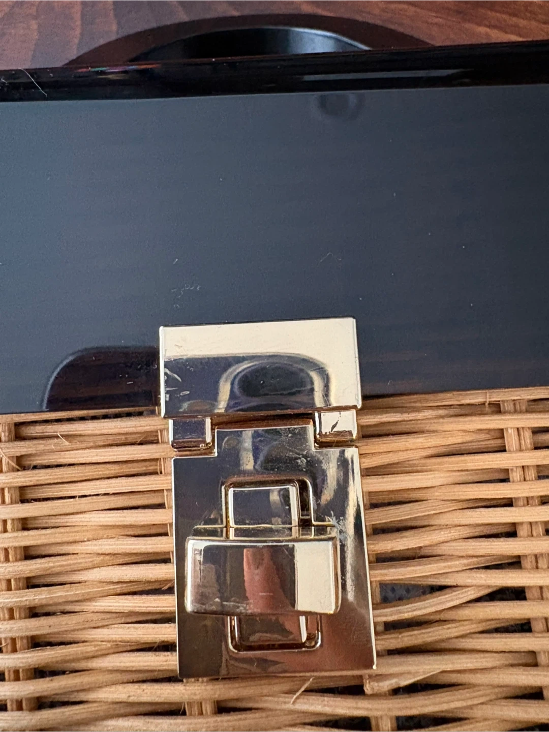 Zara wicker basket bag in good condition. Comes with a detachable black strap so you can wear in shoulder as well. Has a fabric interior lining. Minor scuffs on the buckle and side (see photos) but because its reflective surface it’s not visible when using.