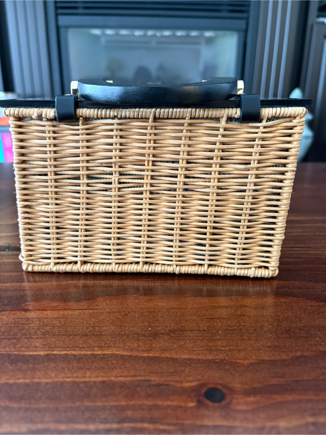 Zara Wicker Basket Bag with Black Handle