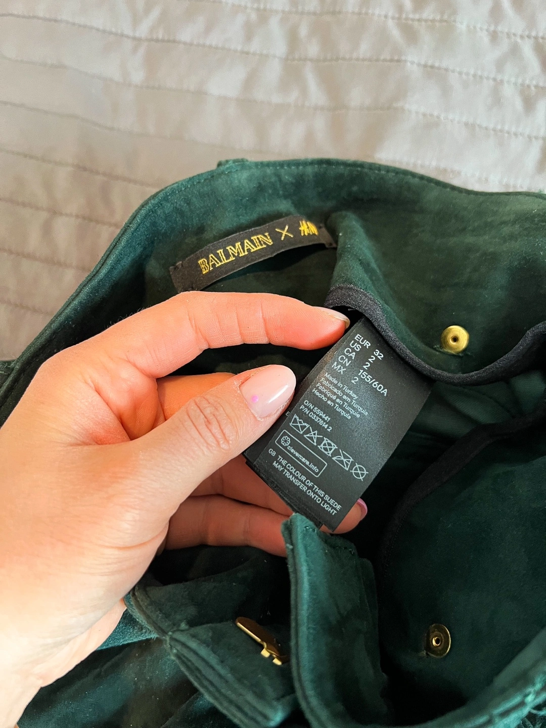 RARE Balmain X H&M green Suede Biker Pants Size US2 EUR 32