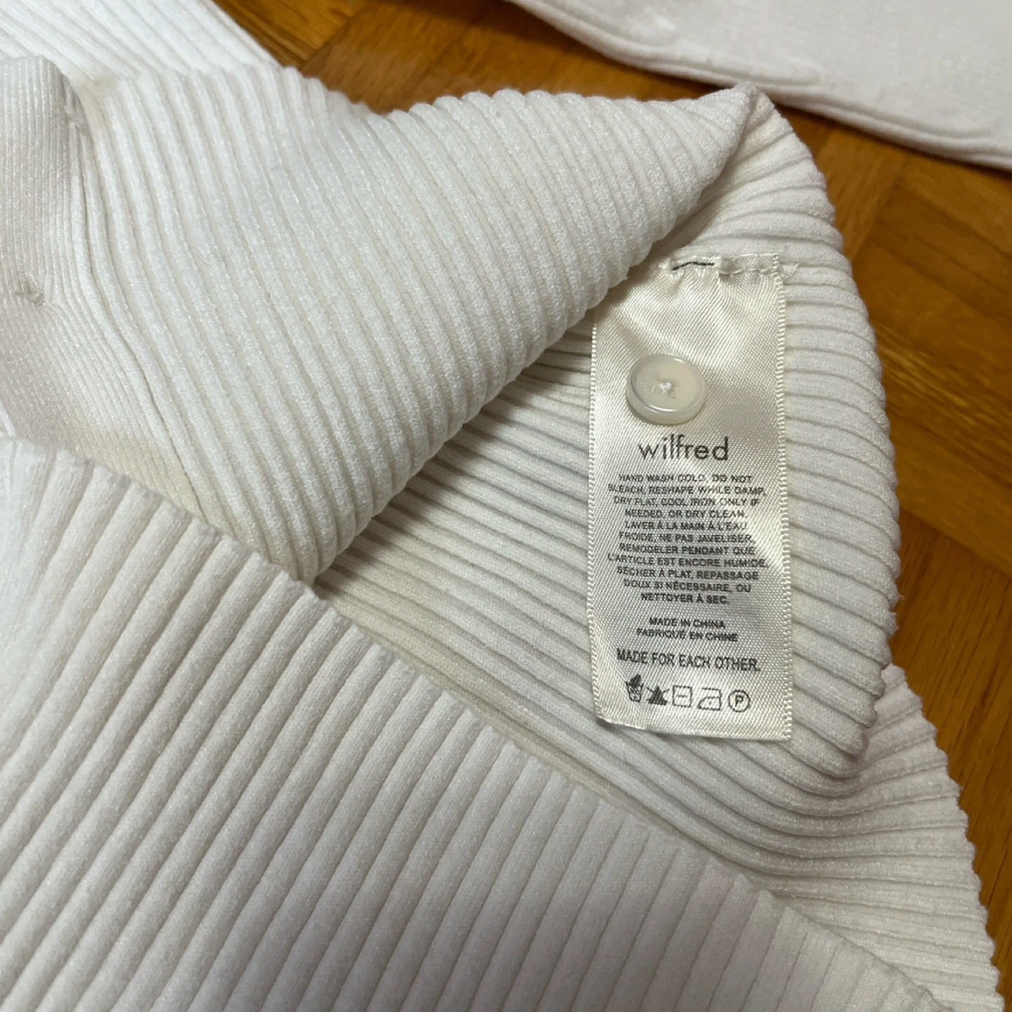 Aritzia Wilfred white button-up ribbed cardigan.