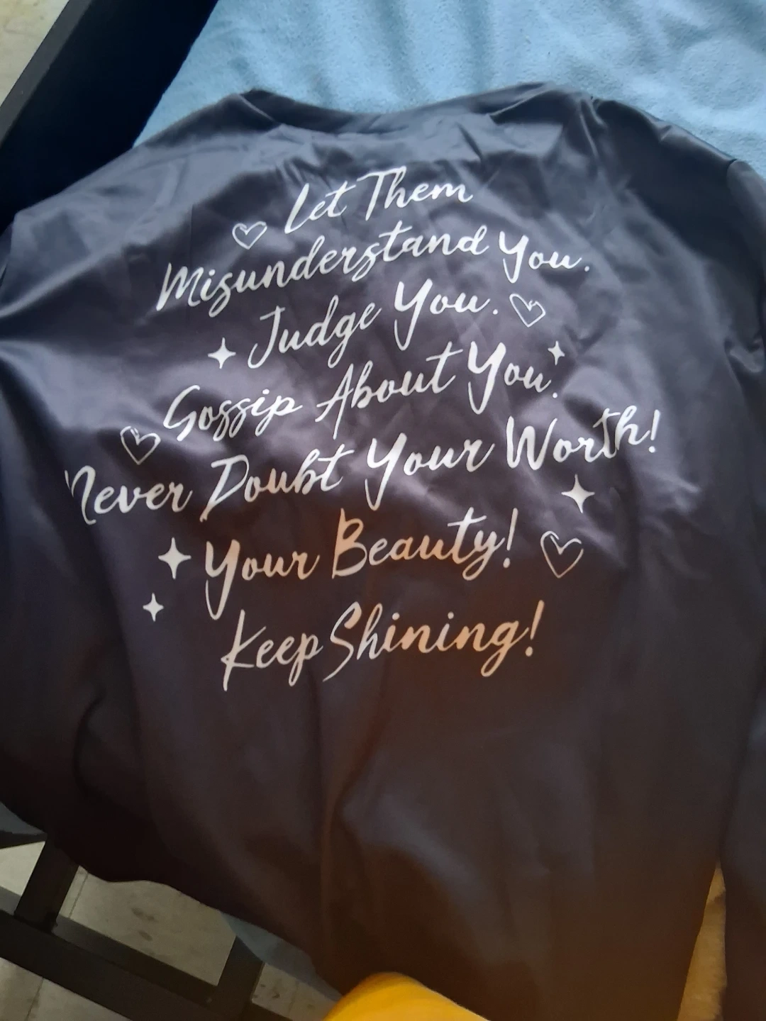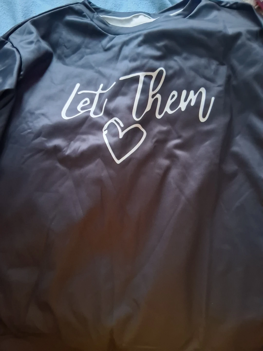 This graphic sweatshirt features the phrase "Let Them" on the front with a heart. The back has an inspirational message that reads "Let Them Misunderstand You. Judge You. Gossip About You. Never Doubt Your Worth! Your Beauty! Keep Shining!". It's a comfortable pullover style.