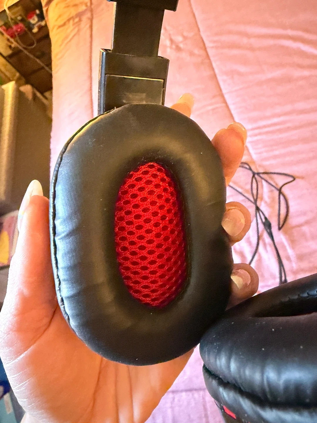 This is a set of RX250-H gaming headphones. They feature a built-in microphone and red accents. The earcups are padded for comfort. These headphones are built for gaming!