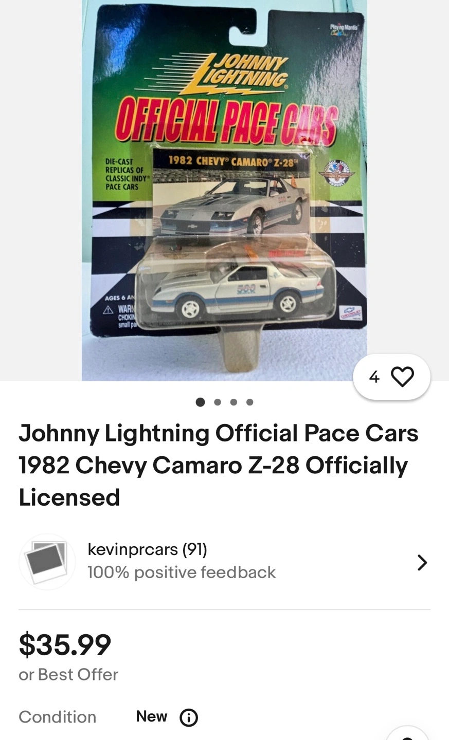$27 (2000) Official pace cars 1982 Chevy Camaro Z-28.