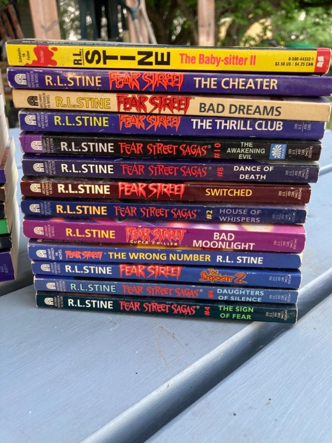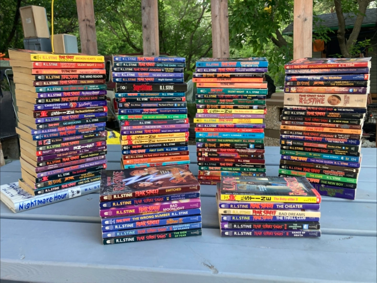 An amazing collection of Fear Street and other RL Stine books, great for anyone who enjoys thrilling reads. Features a variety of titles and colourful spines, perfect for any bookshelf. Books are in varying conditions. Reading a book like this is a great way to spend a rainy afternoon.