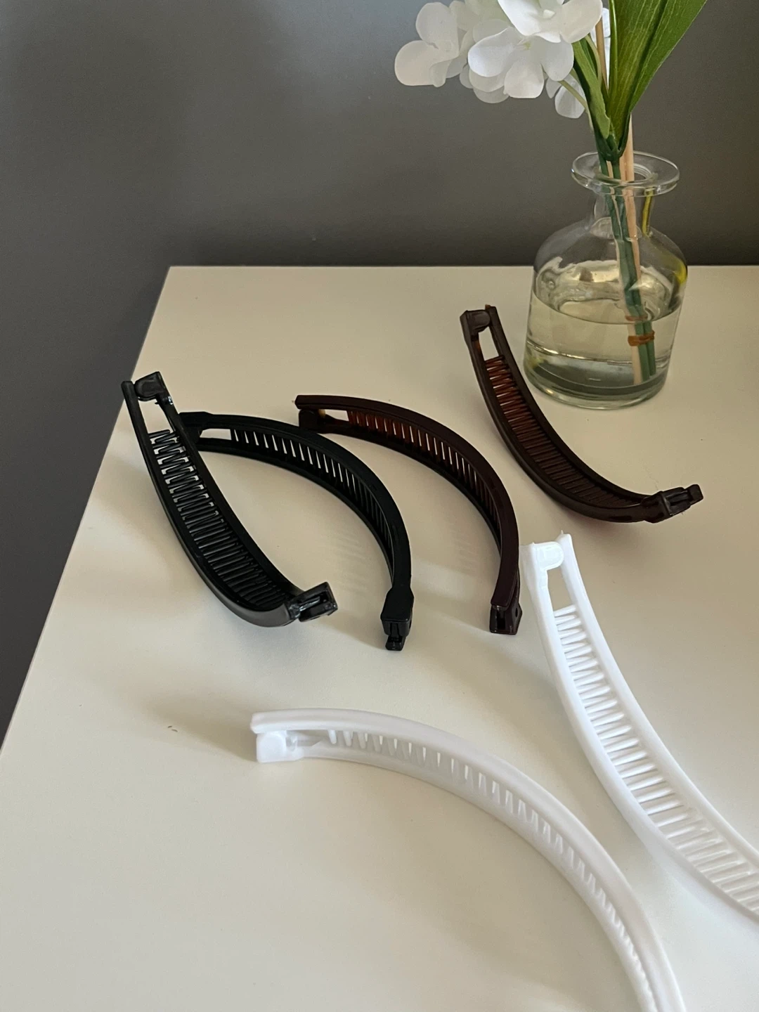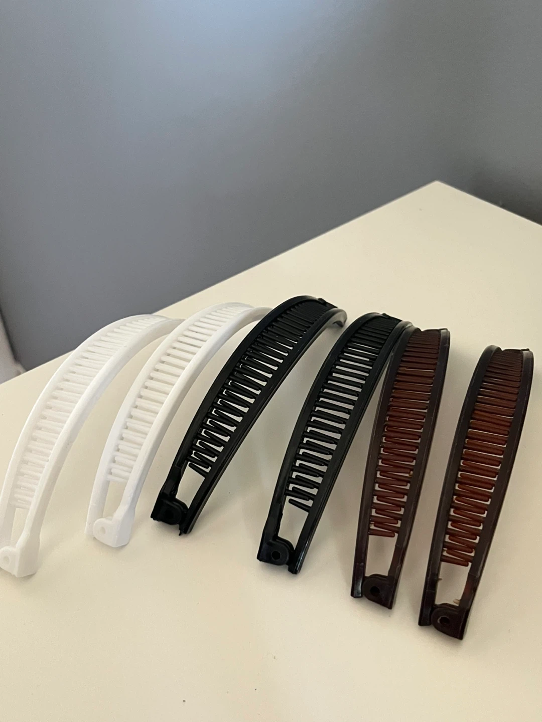 Brown, black, and white banana hair clips. Never used, in great condition. No damage.
