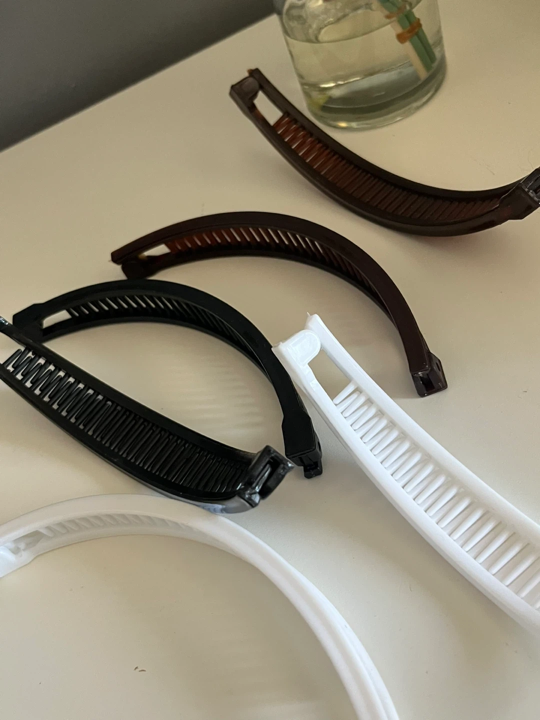 Brown, black, and white banana hair clips. Never used, in great condition. No damage.