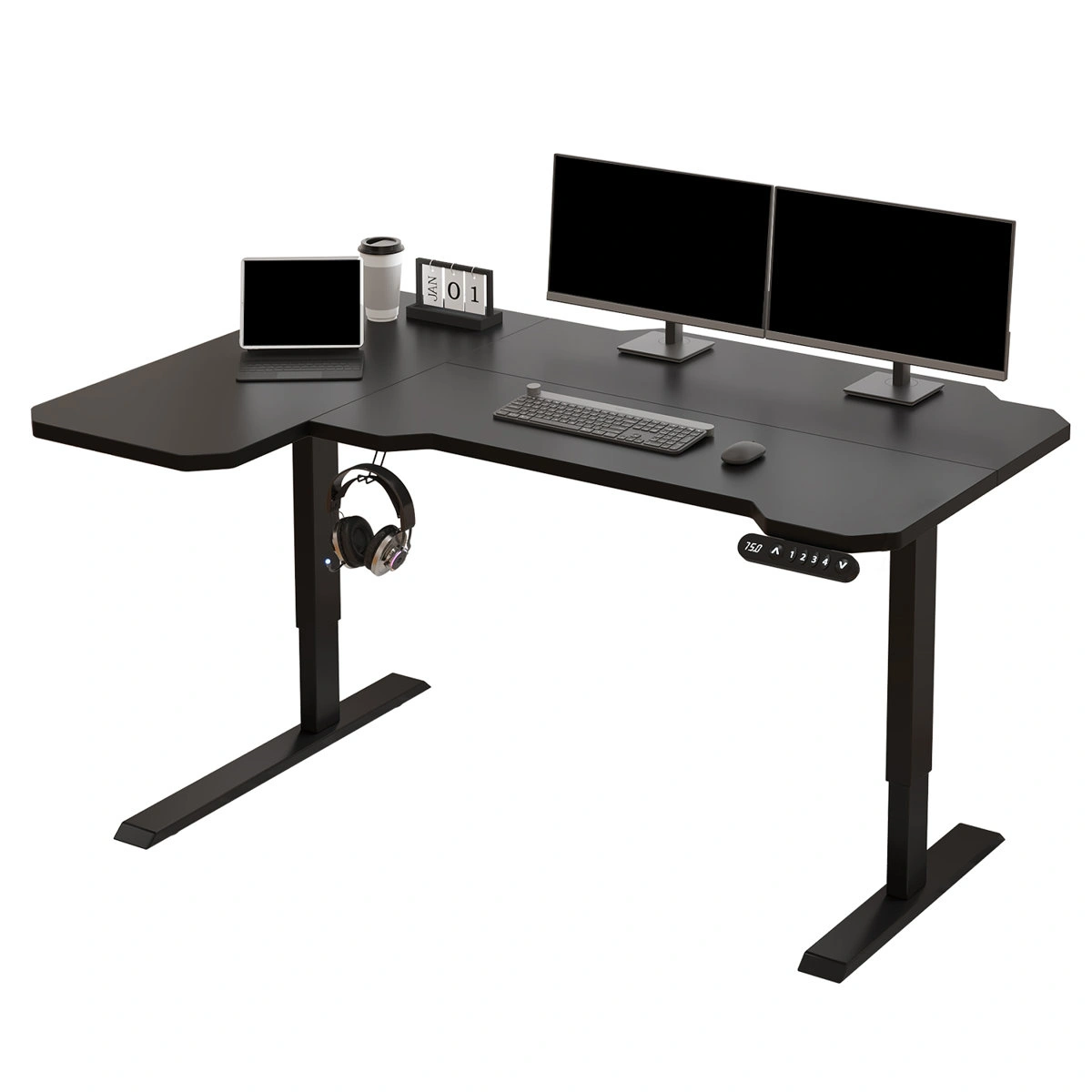 Electric Height Adjustable L-Shaped Standing Desk - Black