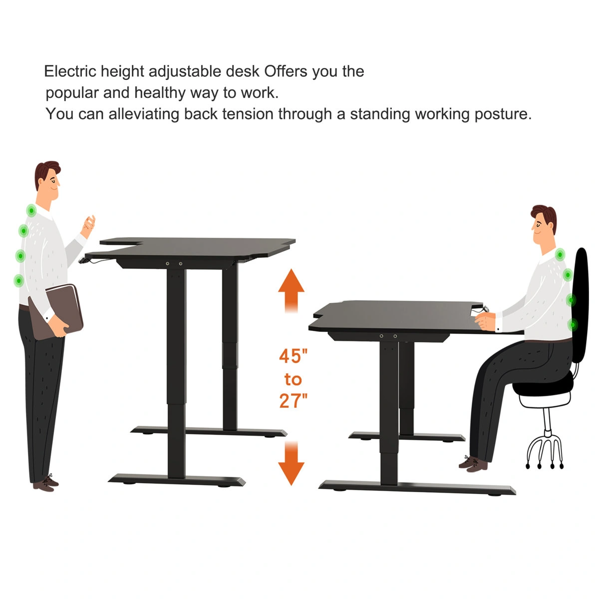 • Electric height adjustment (approx. 27”–45”)