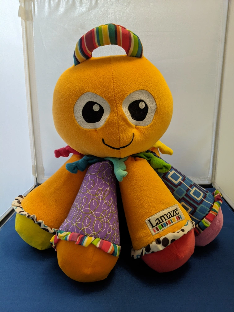 Young infants will love the bright colors and big friendly face, and older babies will enjoy exploring and learning that each tentacle plays a different sound when they grab and squeeze them.