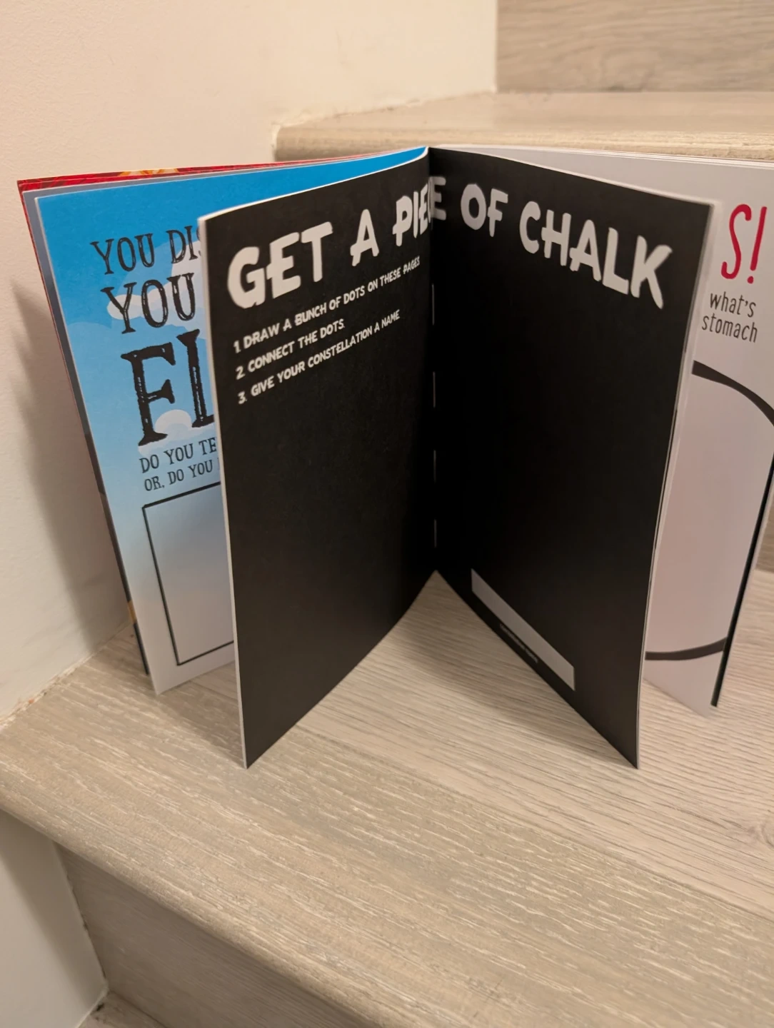 This interactive book comes with a rocket pen that stands up on its own. It's filled with prompts to write, draw, and rip. Perfect for creative kids who love silly challenges! New $5