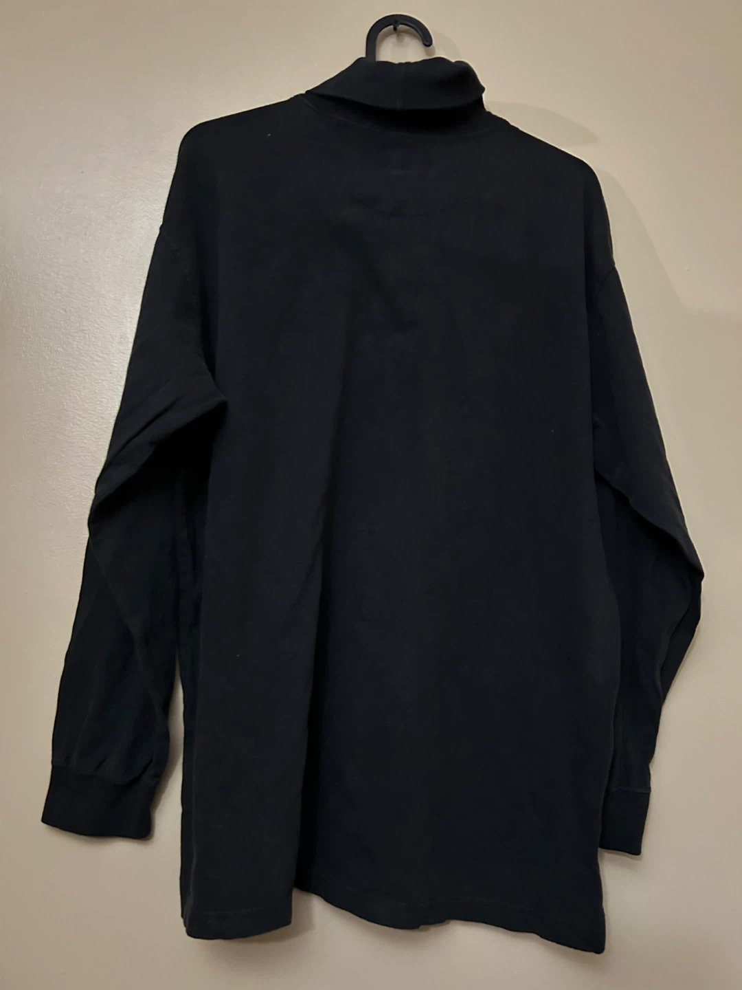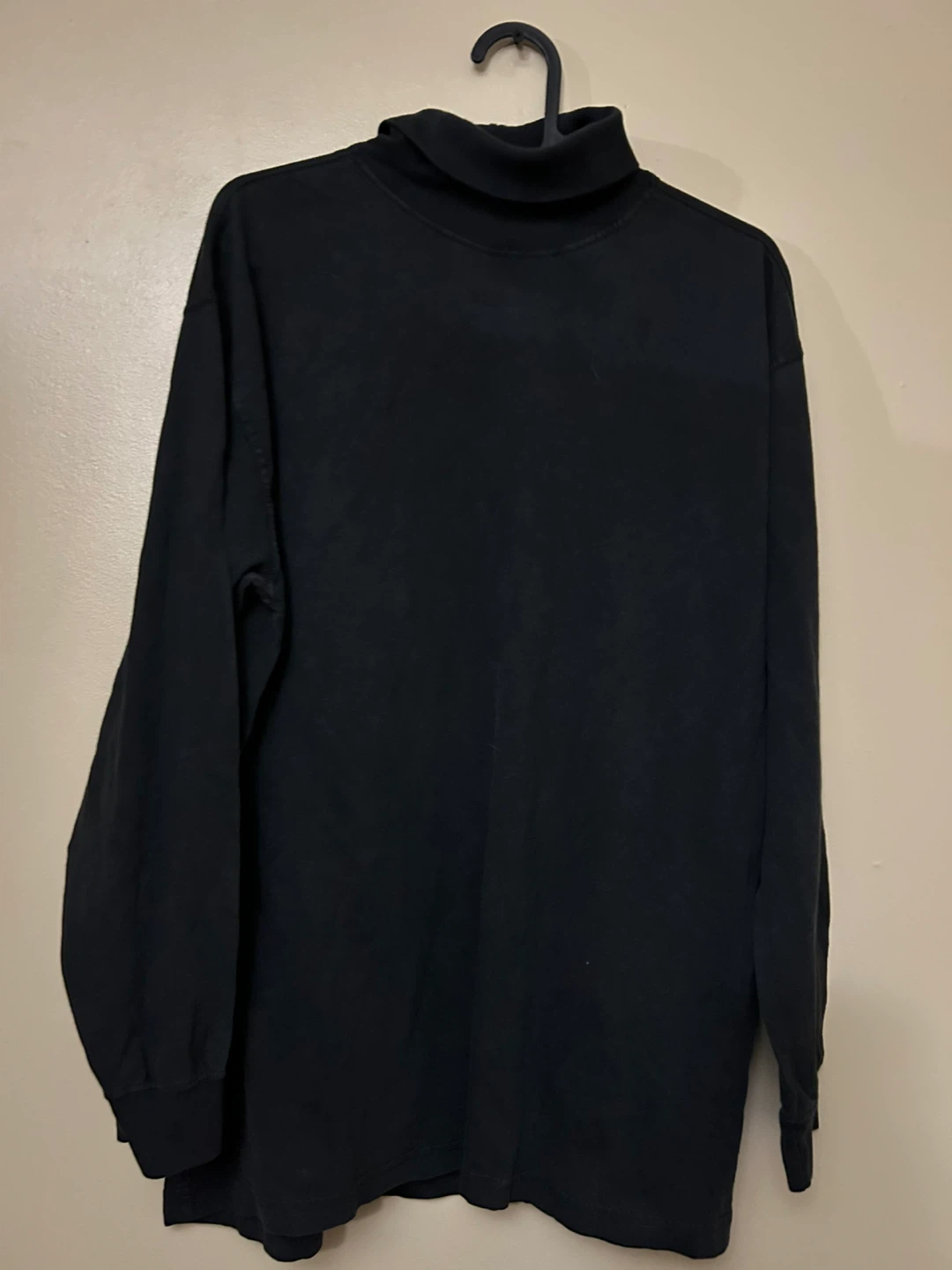This is a used Tip Top Classics men’s black turtleneck, perfect for cooler weather. It's a size medium and made from a comfortable, soft material. Ideal for layering or wearing on its own. It is in good condition.