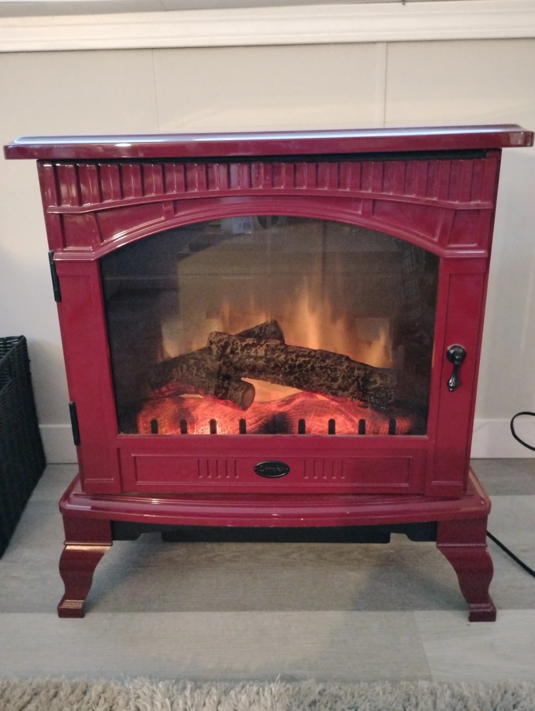 This is a beautifully finished deep red electric fireplace. It's fantastic as a space heater in any room. Featuring a high, low or visual only setting; the realistic flames and classic design will compliment your home decor nicely. Add in an ultimate warm, cozy touch and romantic vibe to your living space. It is quiet as a mouse, easy to use, no maintenance what so ever and in perfect condition. It is 24 inches wide, 26 inches long and 12 inches deep. It weighs about 30lbs. Please message me for pick up details.