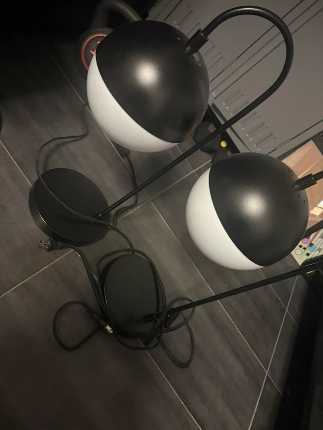 This Safavieh desk lamp features a sleek black metal design with an adjustable arc arm. The spherical shade is split between black and white, offering a modern aesthetic. It's perfect for illuminating a workspace or bedside table.