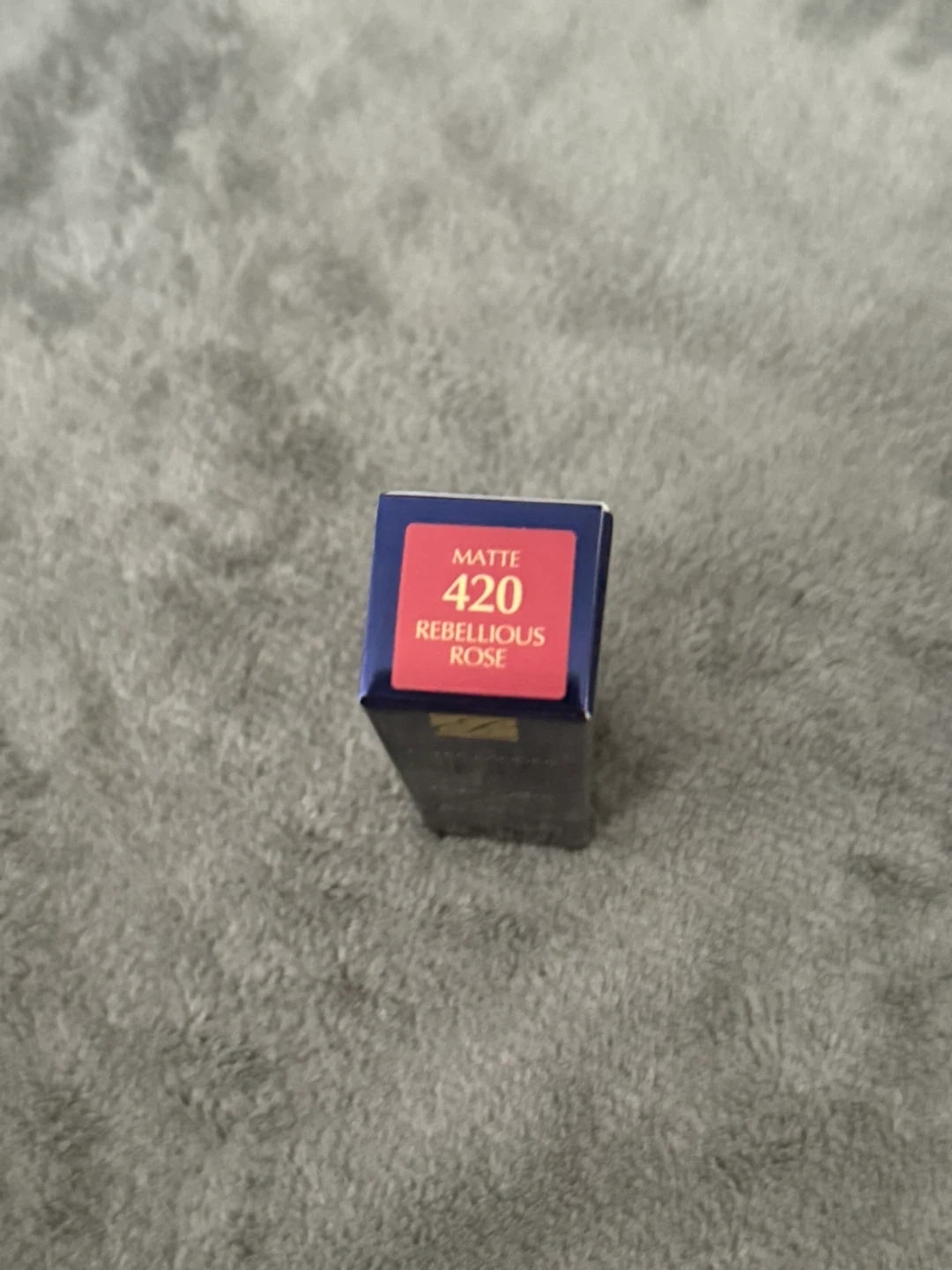 This is a new Estee Lauder Pure Color Matte Lipstick in shade 420 Rebellious Rose. It's a refillable lipstick with a matte finish. The net weight is .12 oz/3.5g.