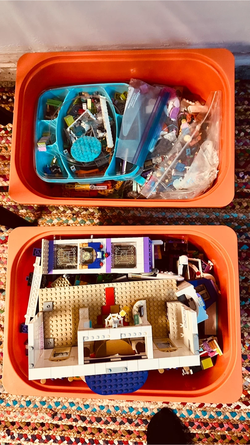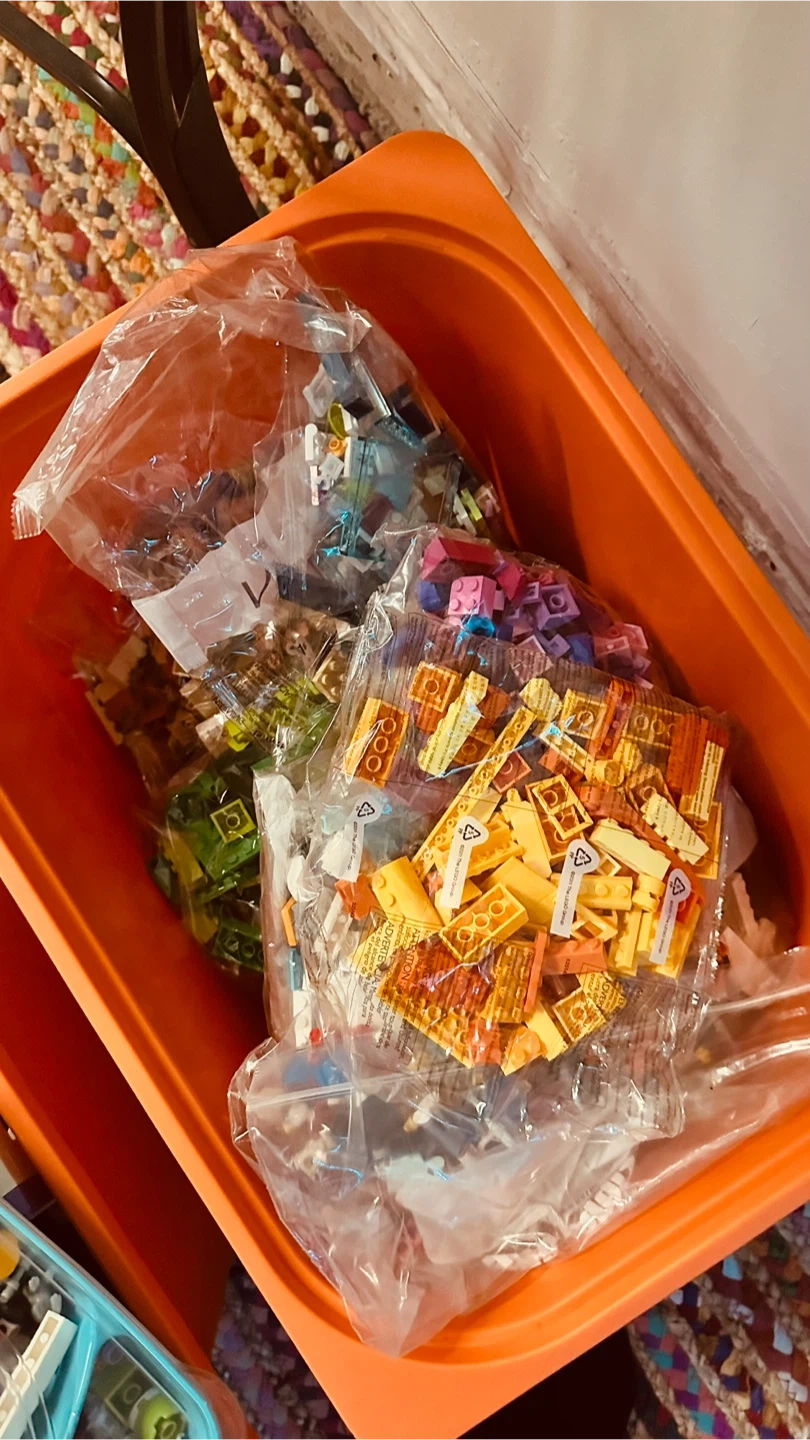 Collection of LEGO bricks and partially assembled sets. Includes various colours and types of pieces. Great for building and imaginative play!