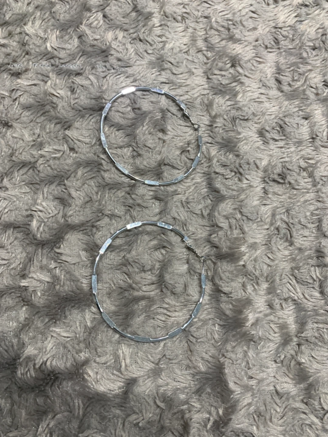 These are silver tone hoop earrings. They have a segmented design. Hoop earrings are versatile accessories.
