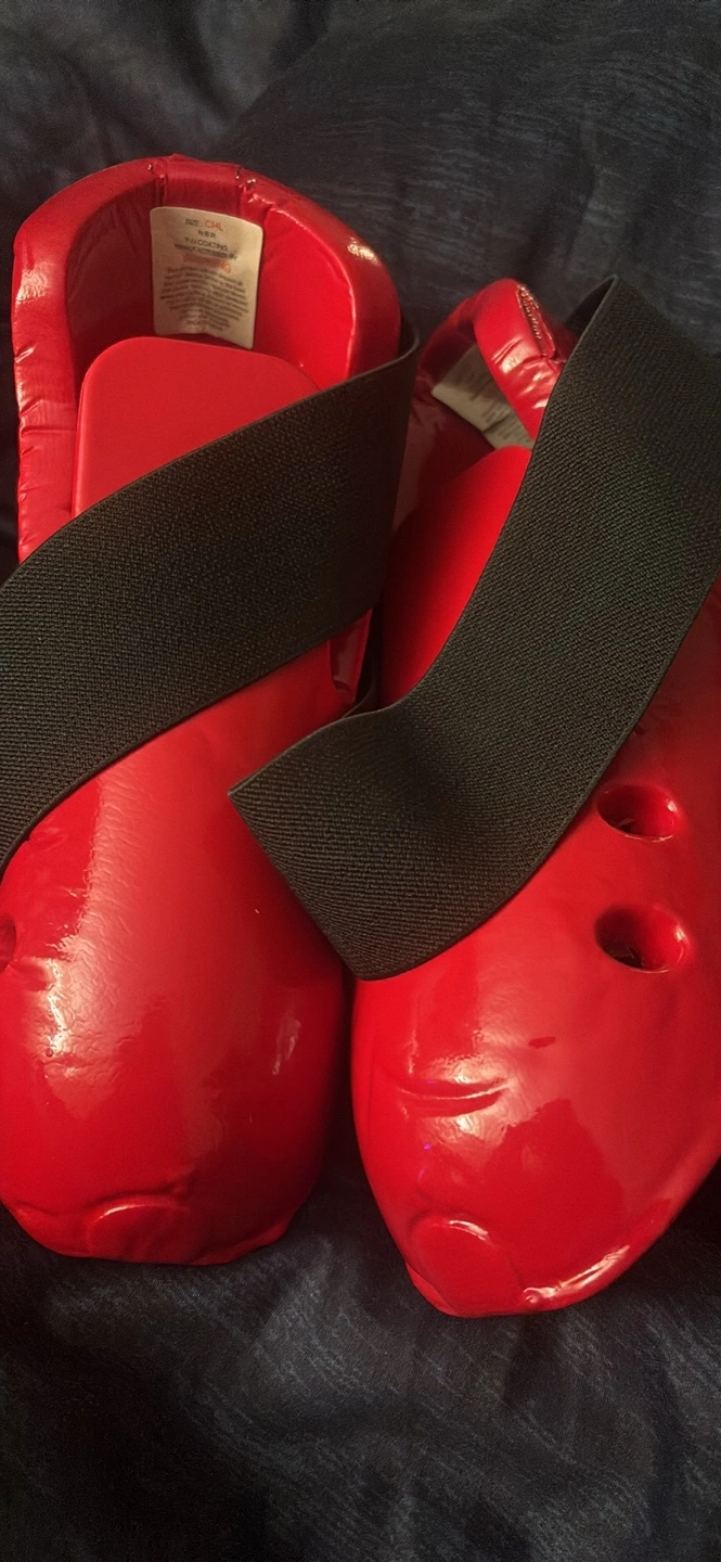 Made with a sponge , these foot sparring guards are flexible and alightweight, allowing for a wide range of movement without blocking your kicks and punches