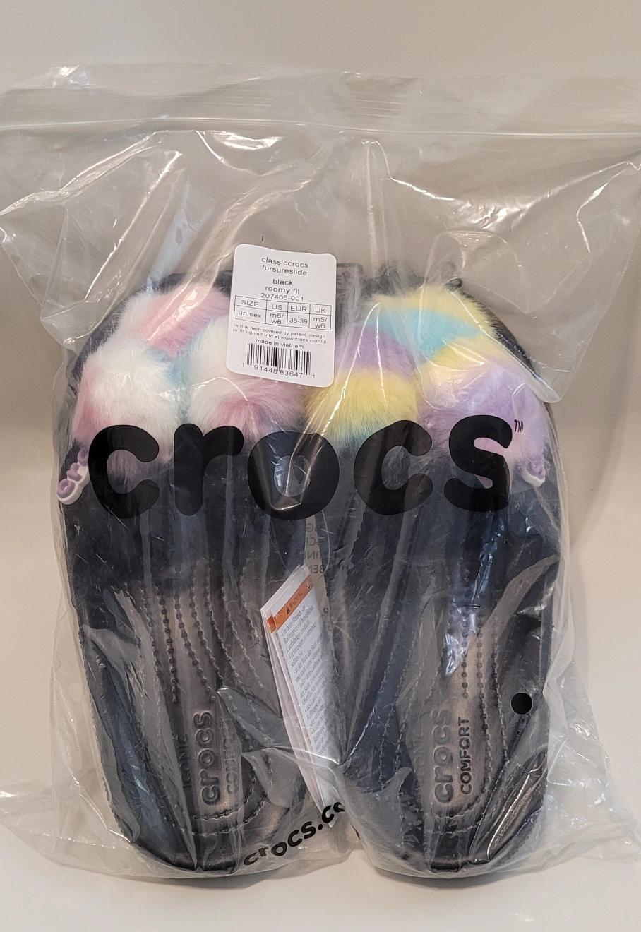 NEW Crocs Classic Fur Pom Pom Slides - Black