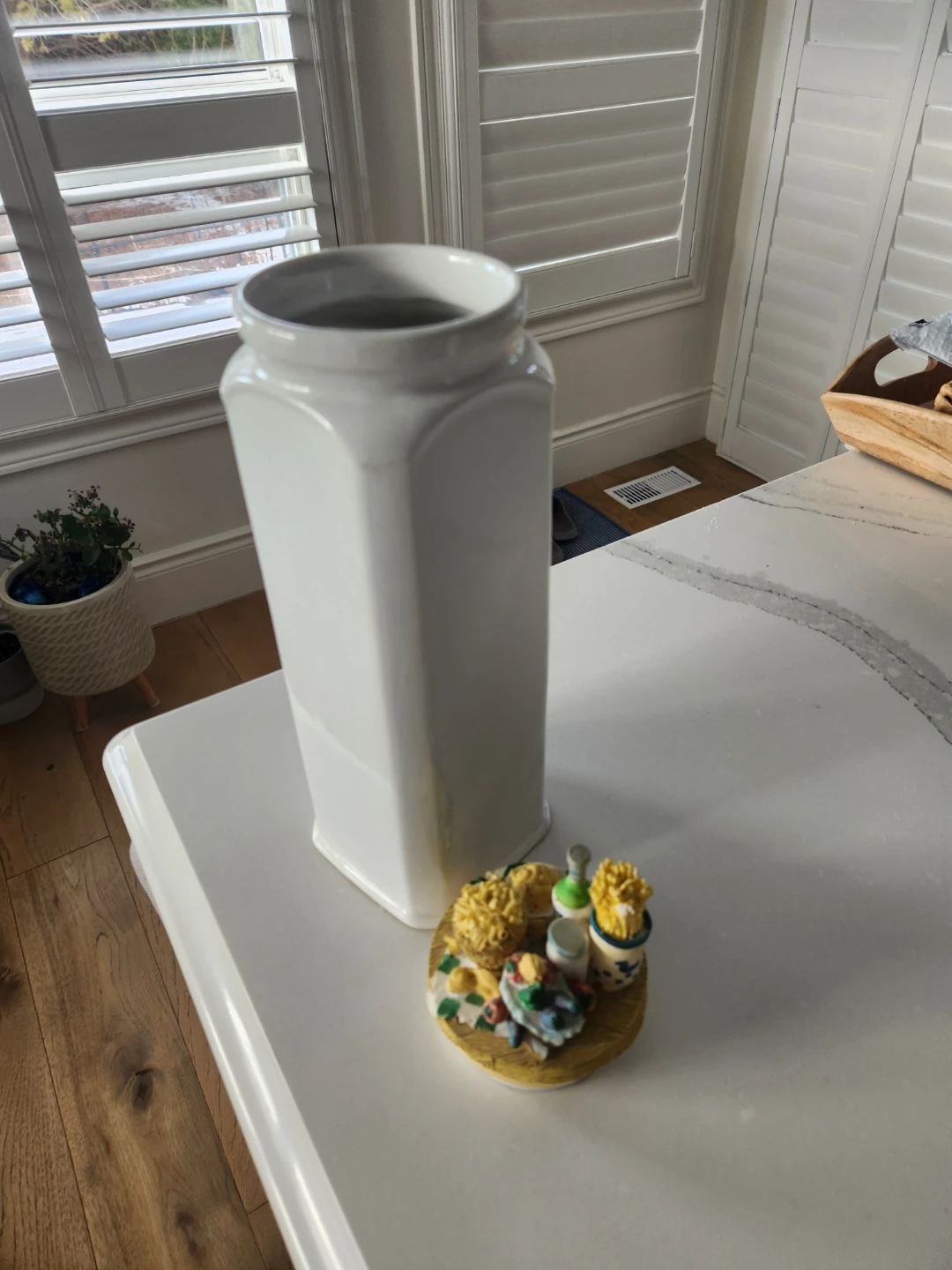 Selling a cute decorative kitchen canister! It's a white canister with a detailed food-themed design on the lid. Great for adding a touch of whimsy to your kitchen decor. Measures 15inches tall with lid. Excellent condition