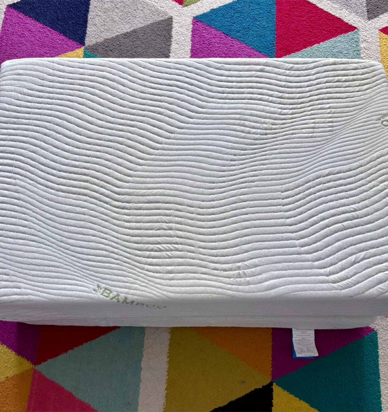 This is a comfortable memory foam pillow with a bamboo cover. It's designed with a wavy texture for breathability. Great for a restful sleep!